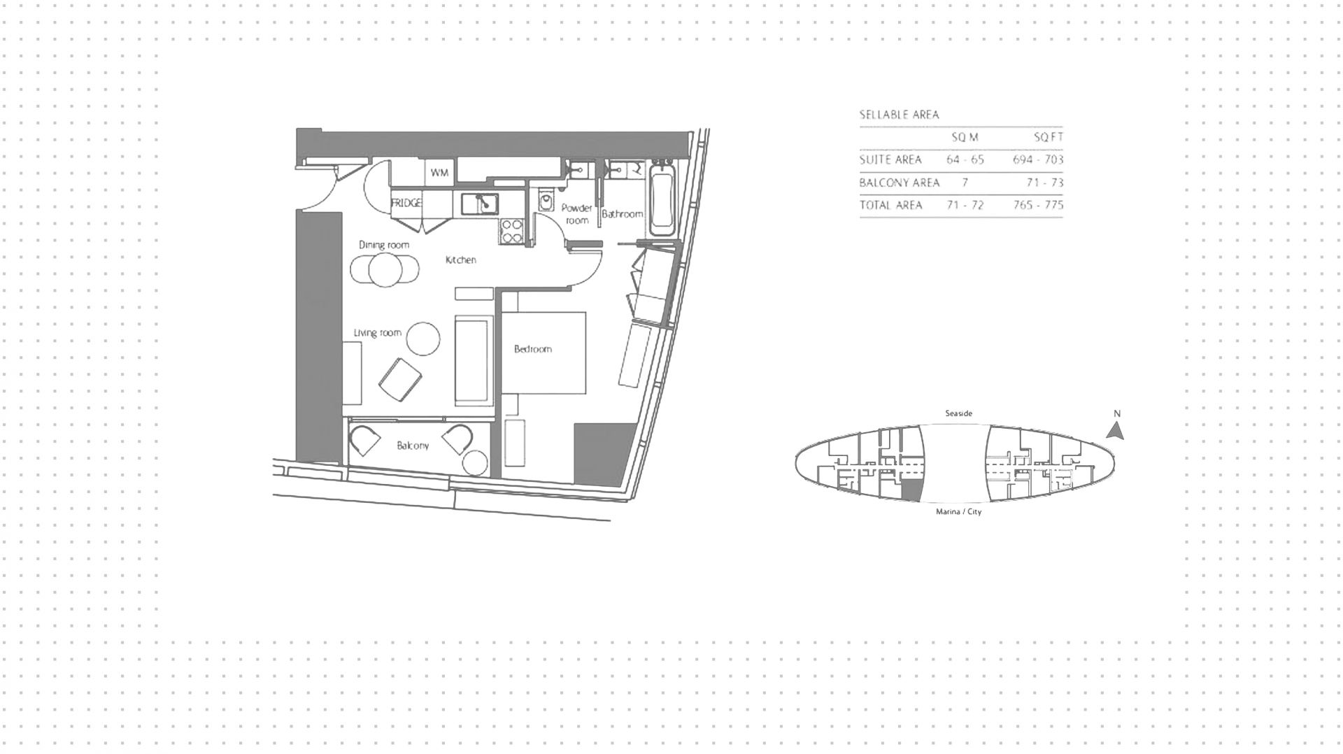1-bedroom apartment in The Address Residences Jumeirah Resort, 764 ft², №38599