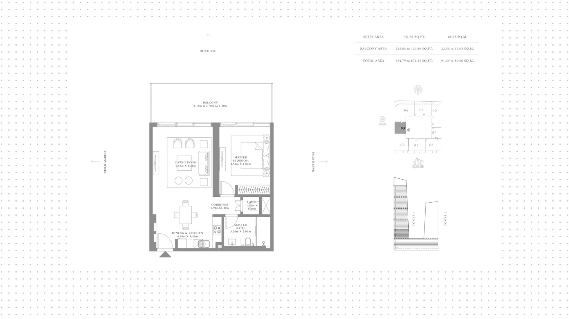 1-bedroom apartment in Grand Bleu Tower, 743 ft², №41338
