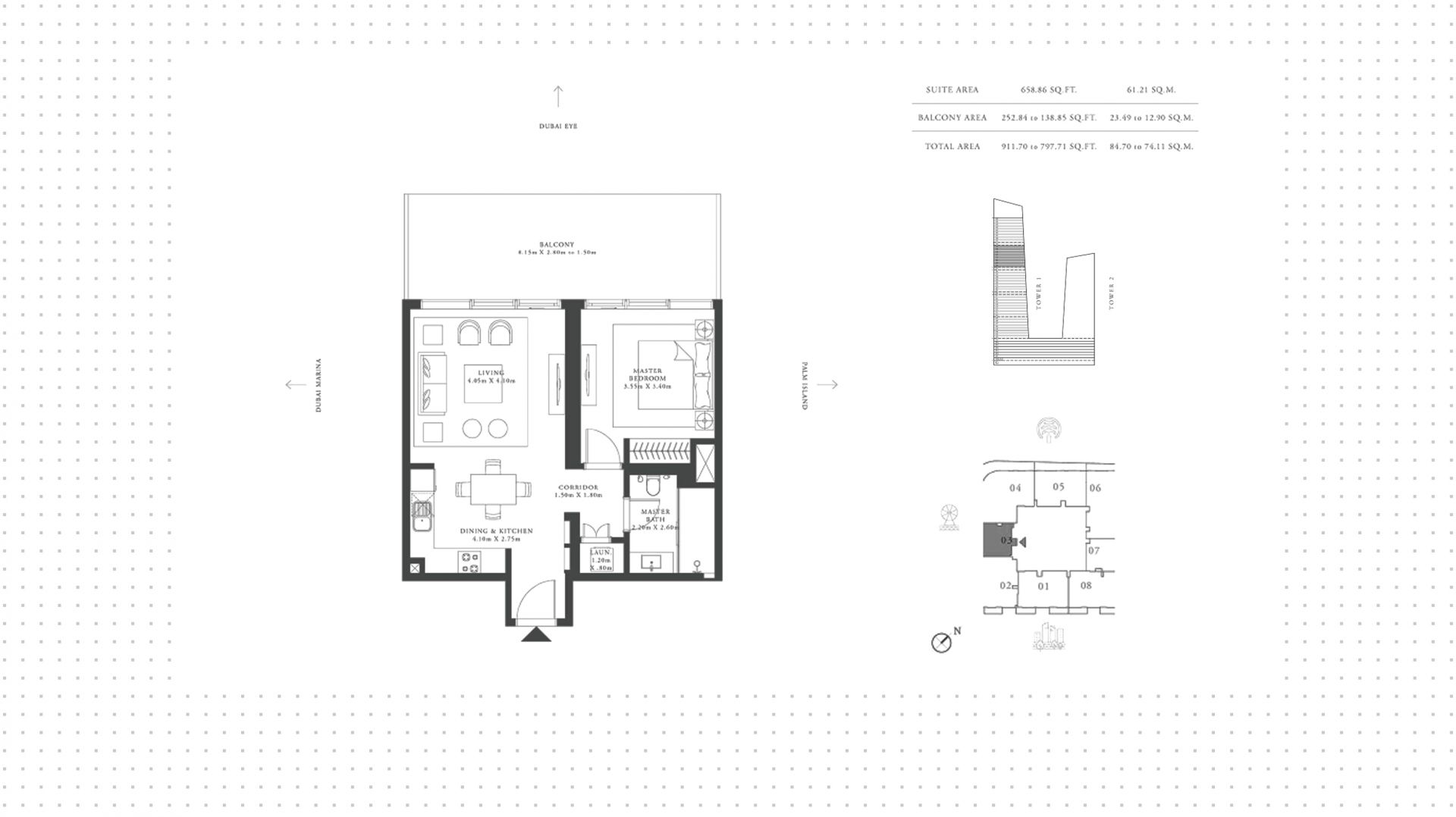 1-bedroom apartment in Grand Bleu Tower, 658 ft², №136916