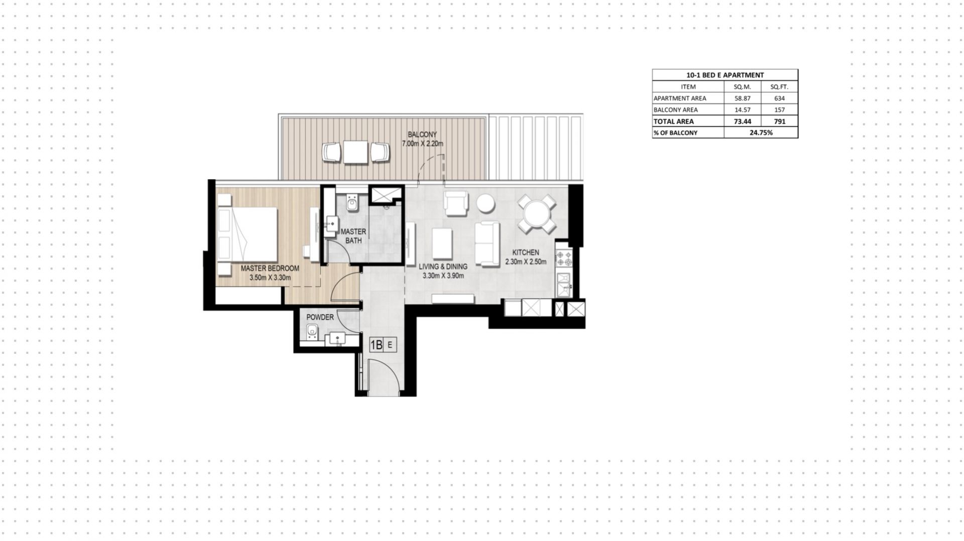 1-bedroom apartment in Marina Living, 791 ft², №95588