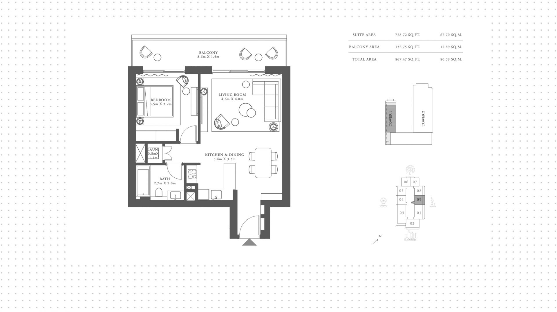 An apartment with 1 bedroom in the complex Palace Beach Residences. The apartment with an area of 867 ft² is located on the 11 of 42, finished. Windows: panoramic. View from the windows: burj al arab view. Delivery of the project is scheduled for the 4st st quarter of 2025.