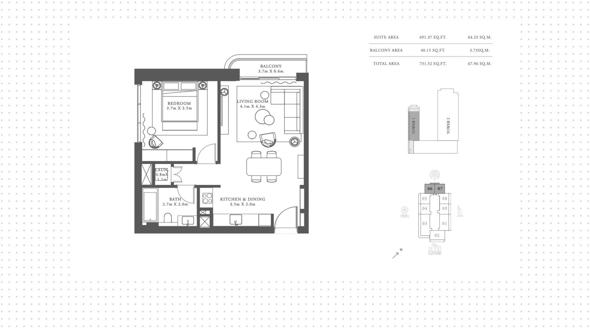 An apartment with 1 bedroom in the complex Palace Beach Residences. The apartment with an area of 732 ft² is located on the of 42, finished. Windows: panoramic. View from the windows: palm jumeirah view. Delivery of the project is scheduled for the 4st st quarter of 2025.