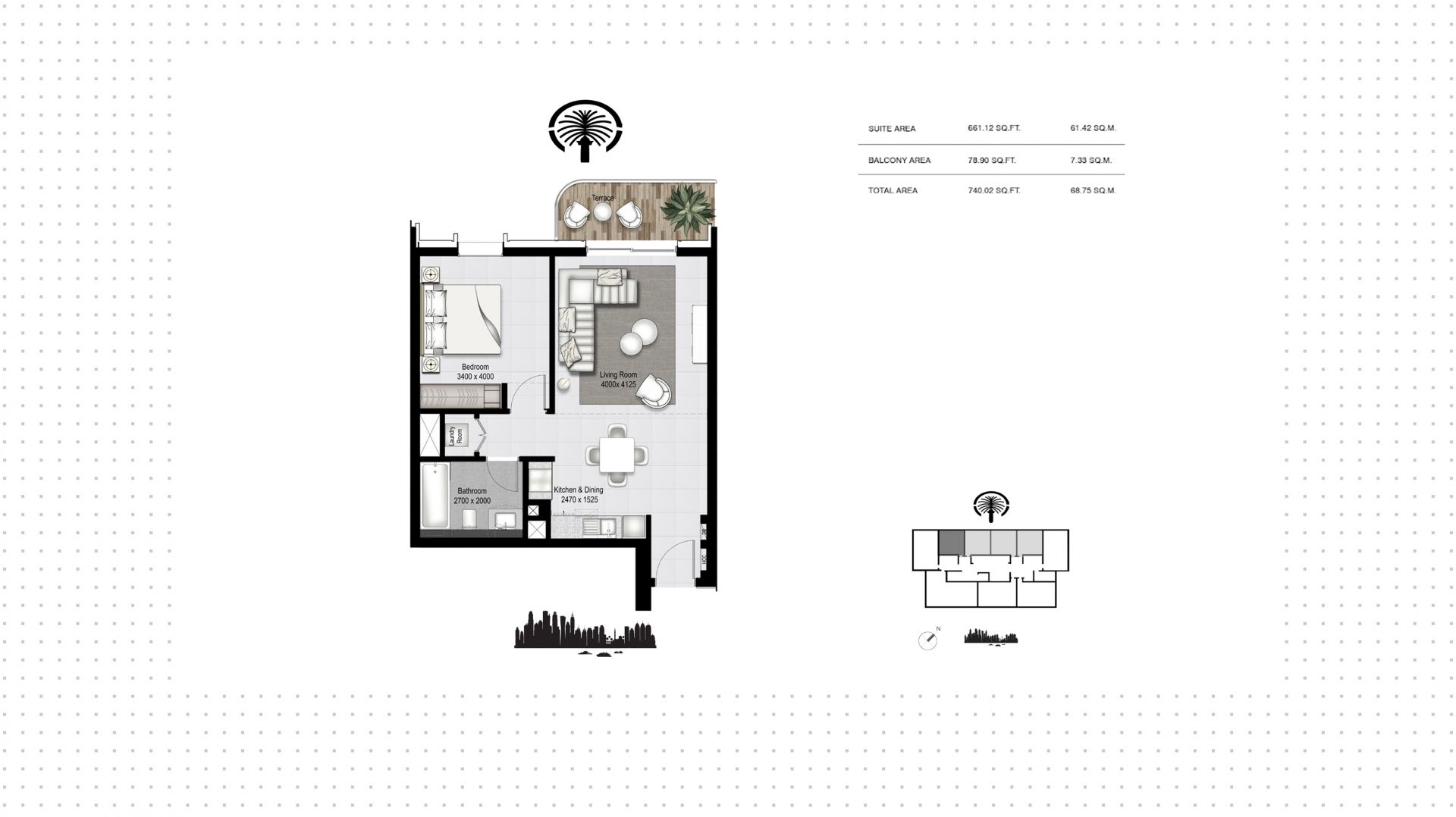 An apartment with 1 bedroom in the complex Marina Vista. The apartment with an area of 738 ft² is located on the 12 of 45, finished. There is a terrace. Windows: panoramic. View from the windows: partial sea and palm view.