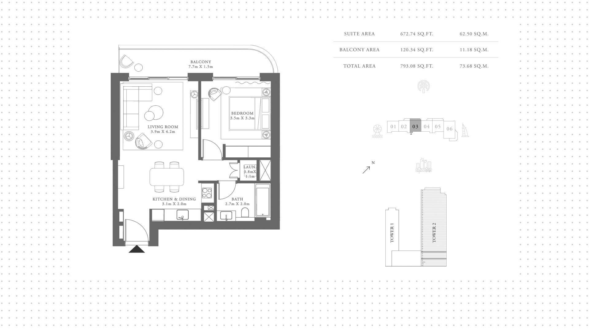 An apartment with 1 bedroom in the complex Palace Beach Residences. The apartment with an area of 794 ft² is located on the 32 of 42, finished. Windows: panoramic. Delivery of the project is scheduled for the 4st st quarter of 2025.