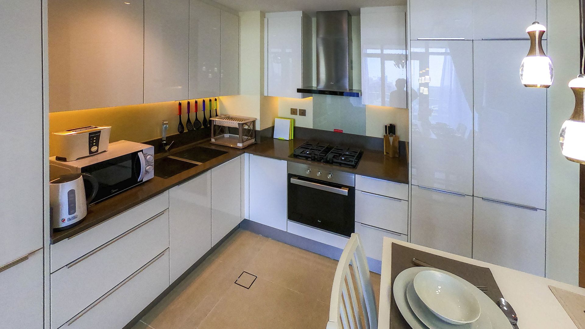 An apartment with 1 bedroom in the complex Marina Gate. The apartment with an area of 775 ft² is located on the 48 of 64, finished. Windows: panoramic. View from the windows: marina view.