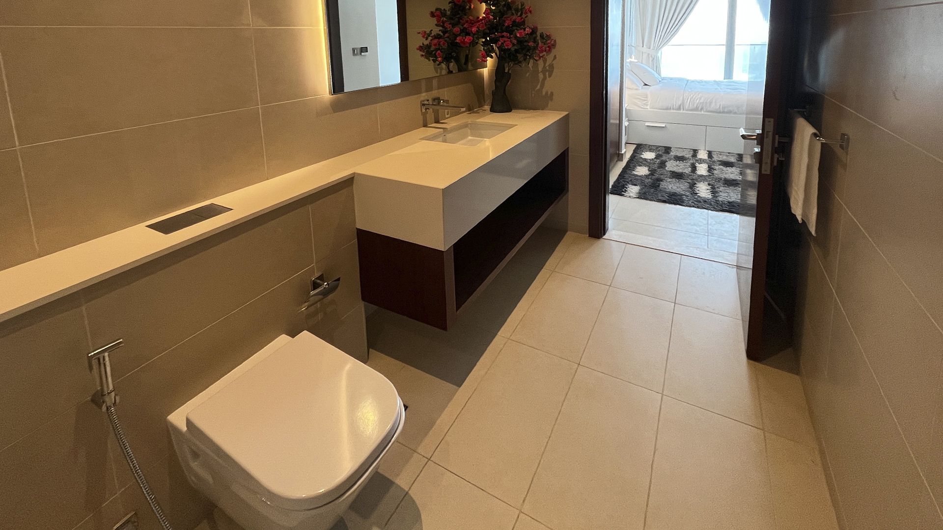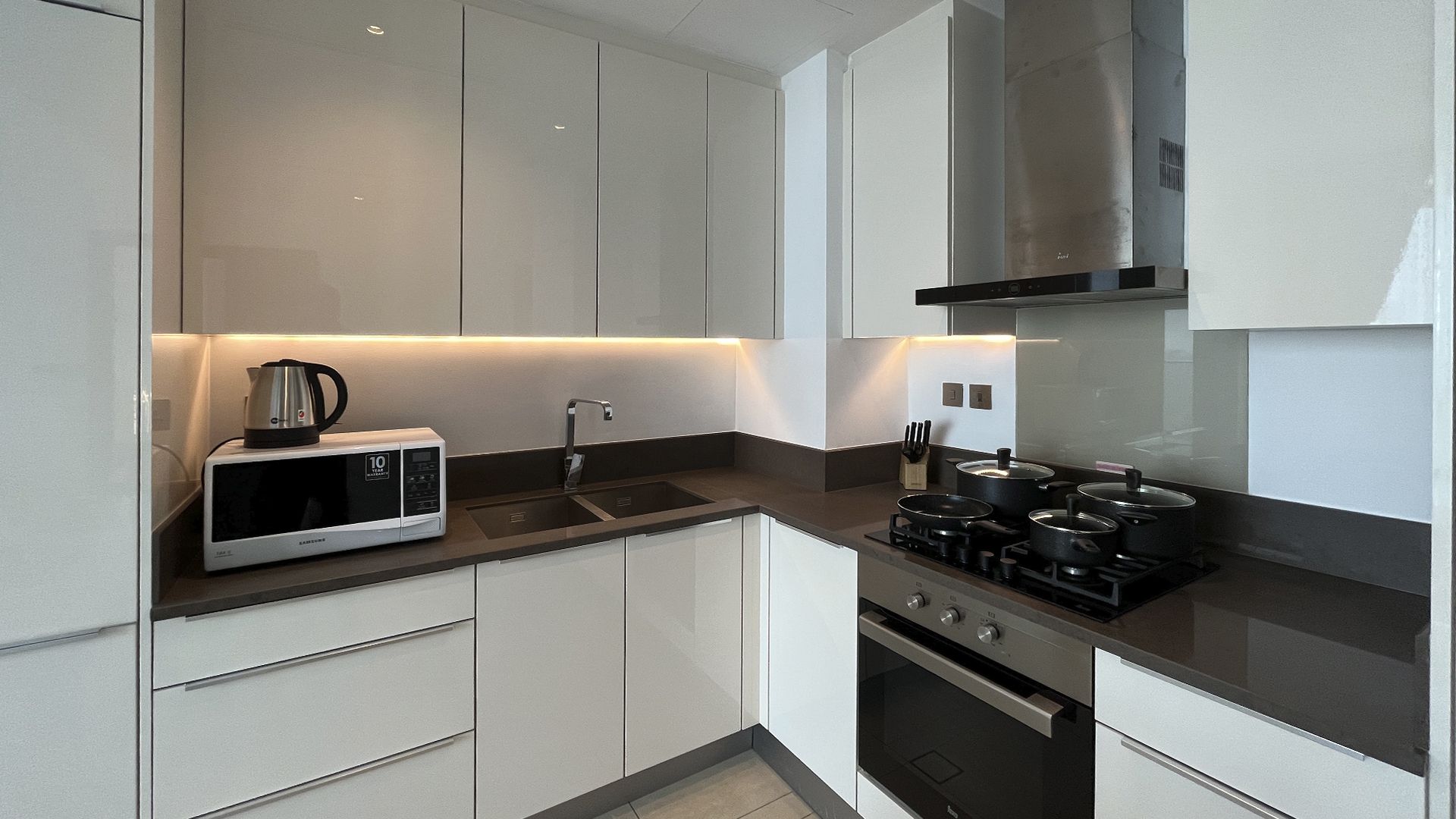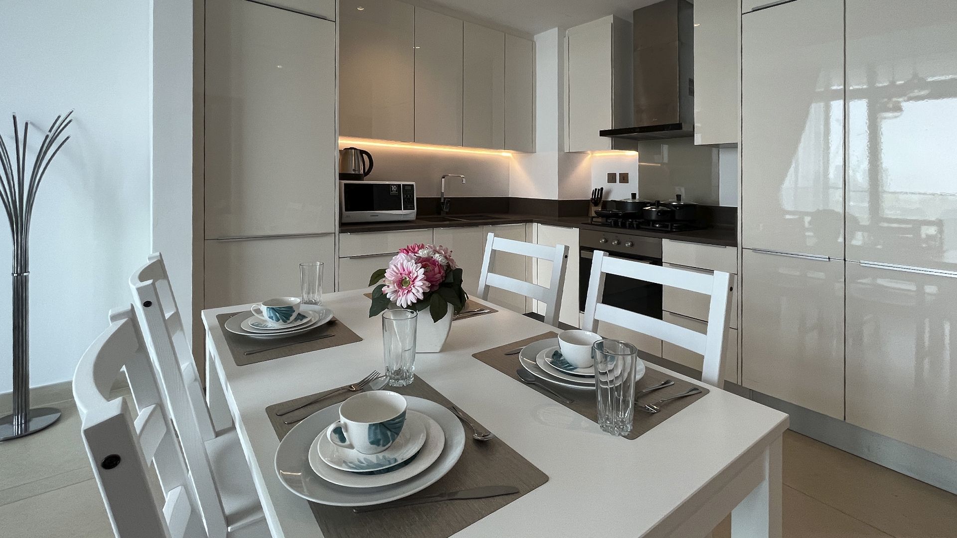 An apartment with 1 bedroom in the complex Marina Gate. The apartment with an area of 775 ft² is located on the 53 of 64, finished. Windows: panoramic. View from the windows: marina view.