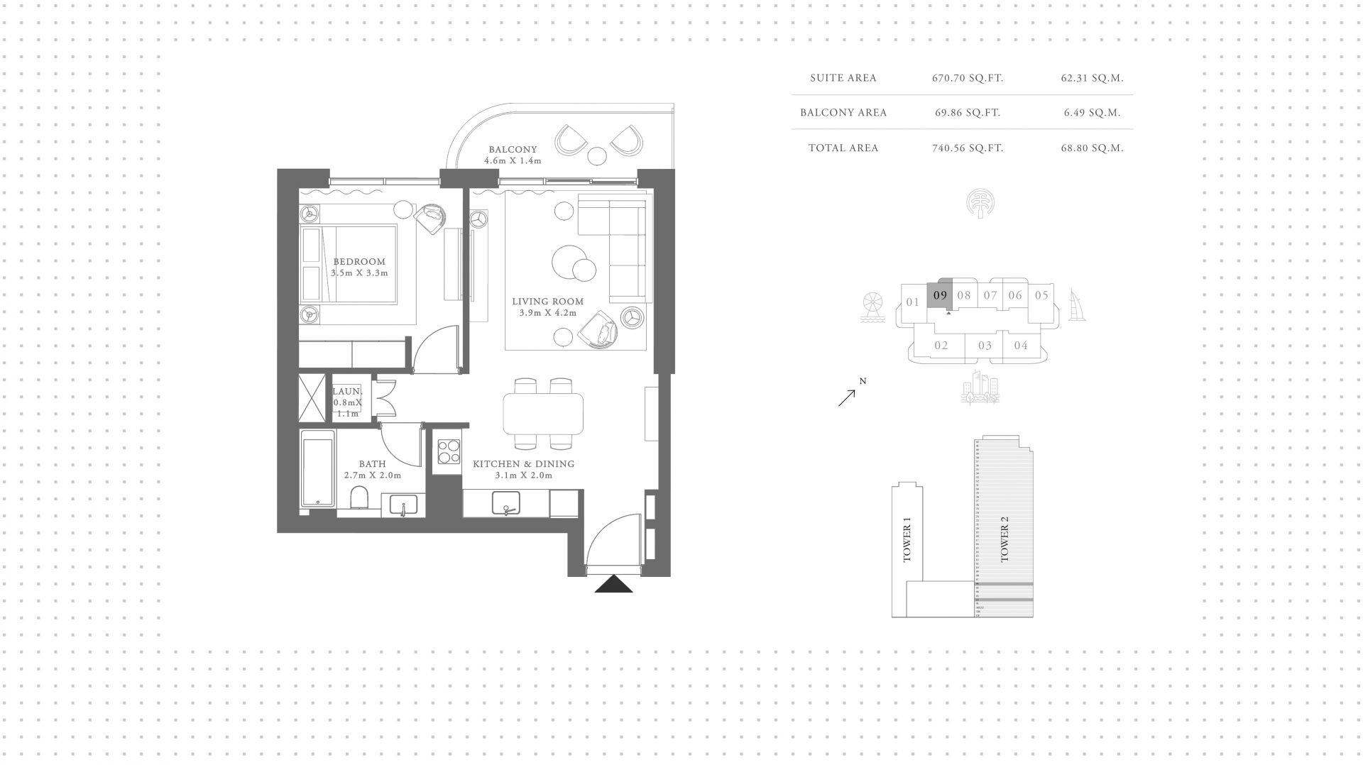 1-bedroom apartment in Palace Beach Residences, 741 ft², №37922