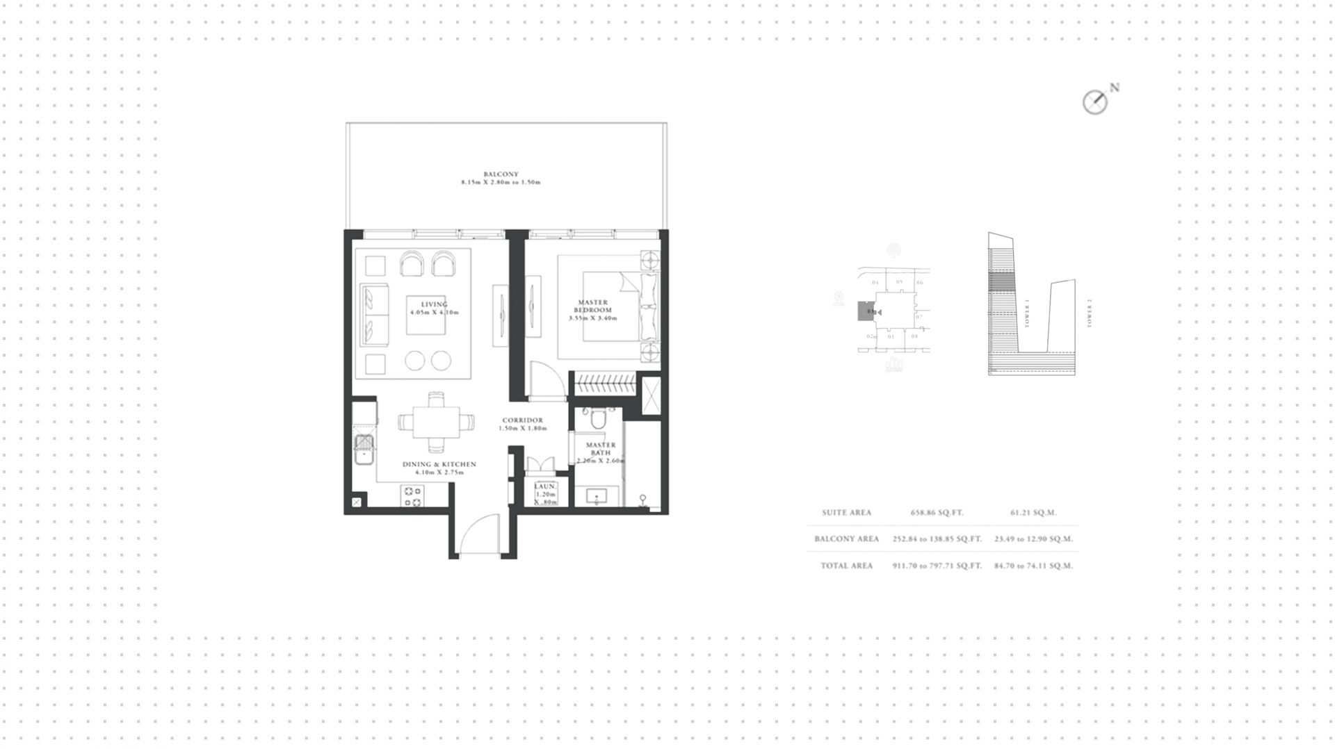 1-bedroom apartment in Grand Bleu Tower, 911 ft², №105339