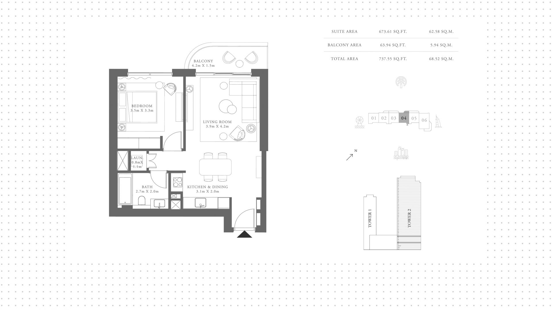 1-bedroom apartment in Palace Beach Residences, 737 ft², №40749