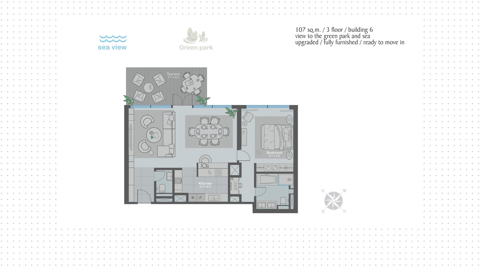 Апартаменты с 1-й спальней для любителей тишины и спокойствия в знаковом комплексе Bluewaters Residences. В вашем распоряжении просторная терраса с видом на водную гладь и зелень сада, где вы сможете проводить уютные посиделки с самыми близкими.