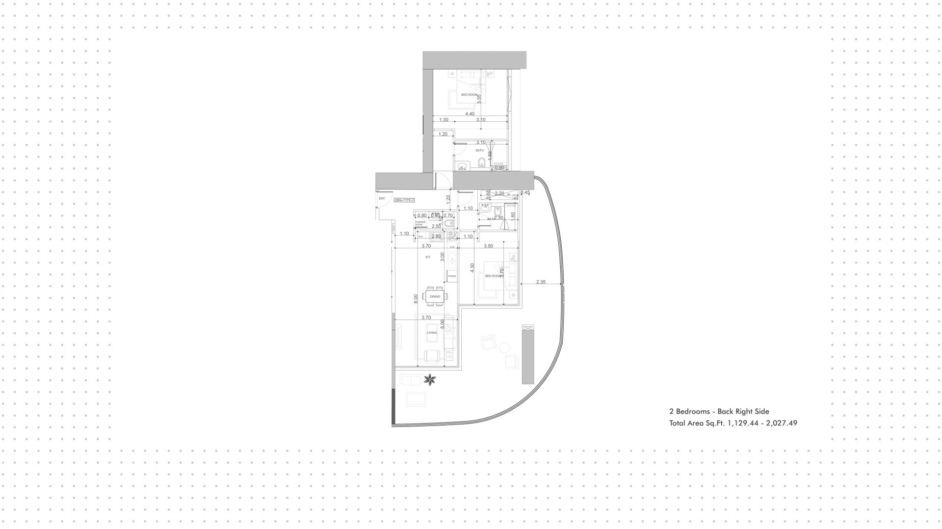 An apartment with 2 bedrooms in the complex Madain Tower. The apartment with an area of 1 809 ft² is located on the 45 of 62, finished. Windows: panoramic. View from the windows: rear (golf view). Delivery of the project is scheduled for the 4st st quarter of 2027.