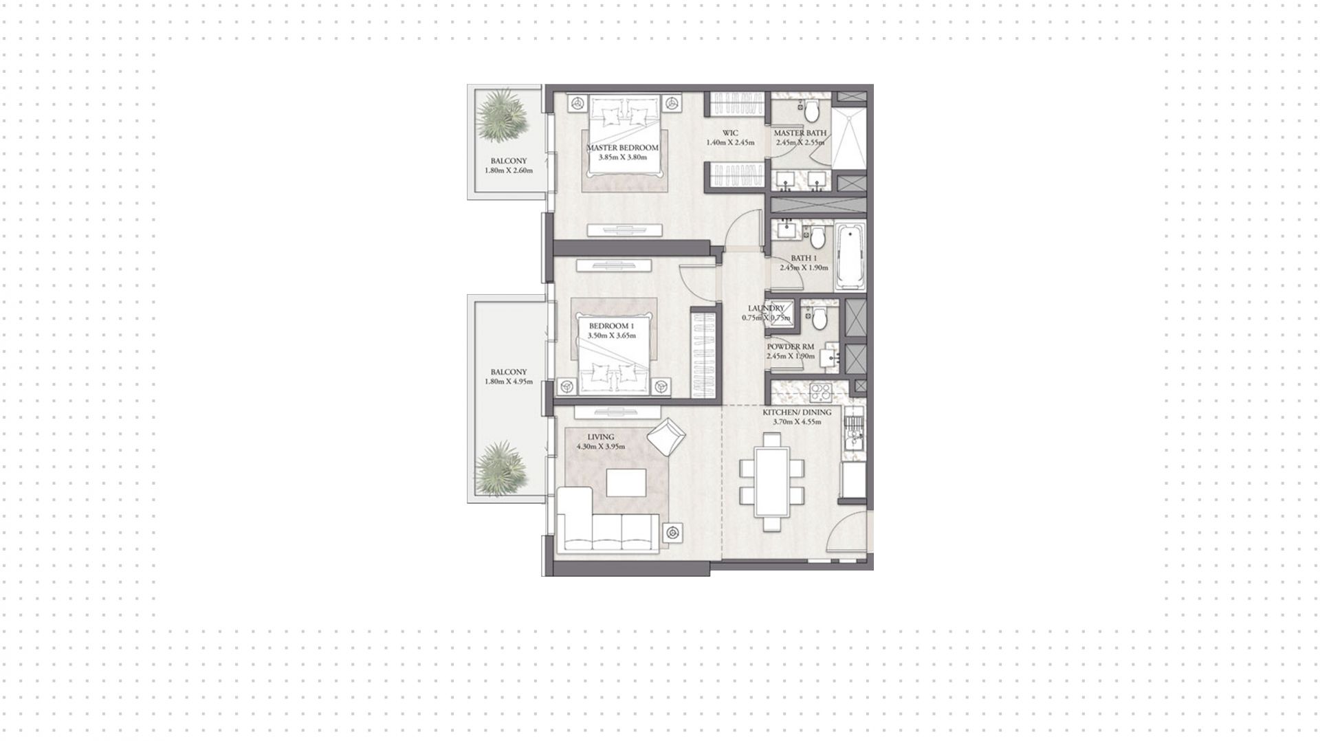 2-bedrooms apartment in Beach Mansion, 1 213 ft², №157043