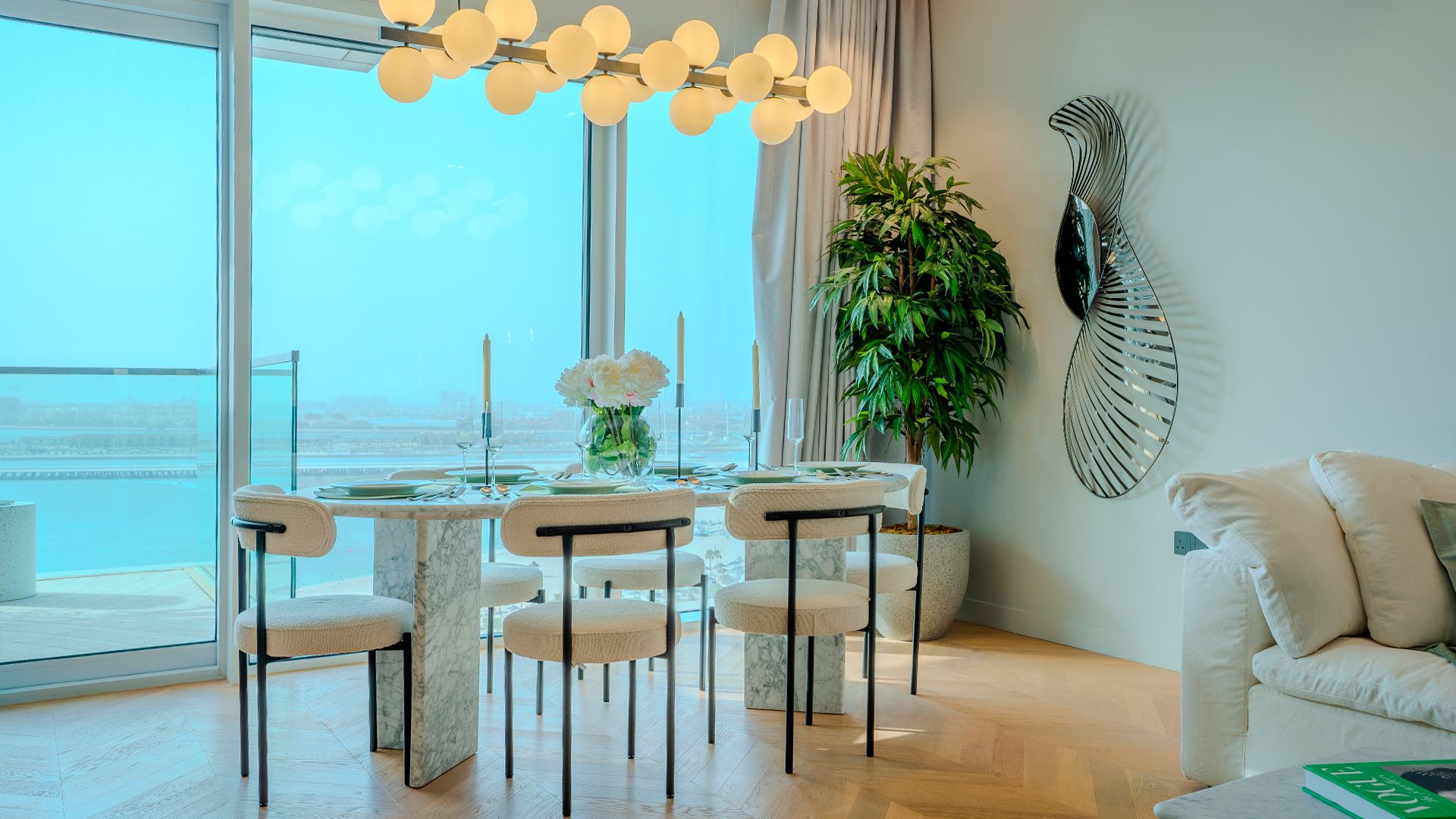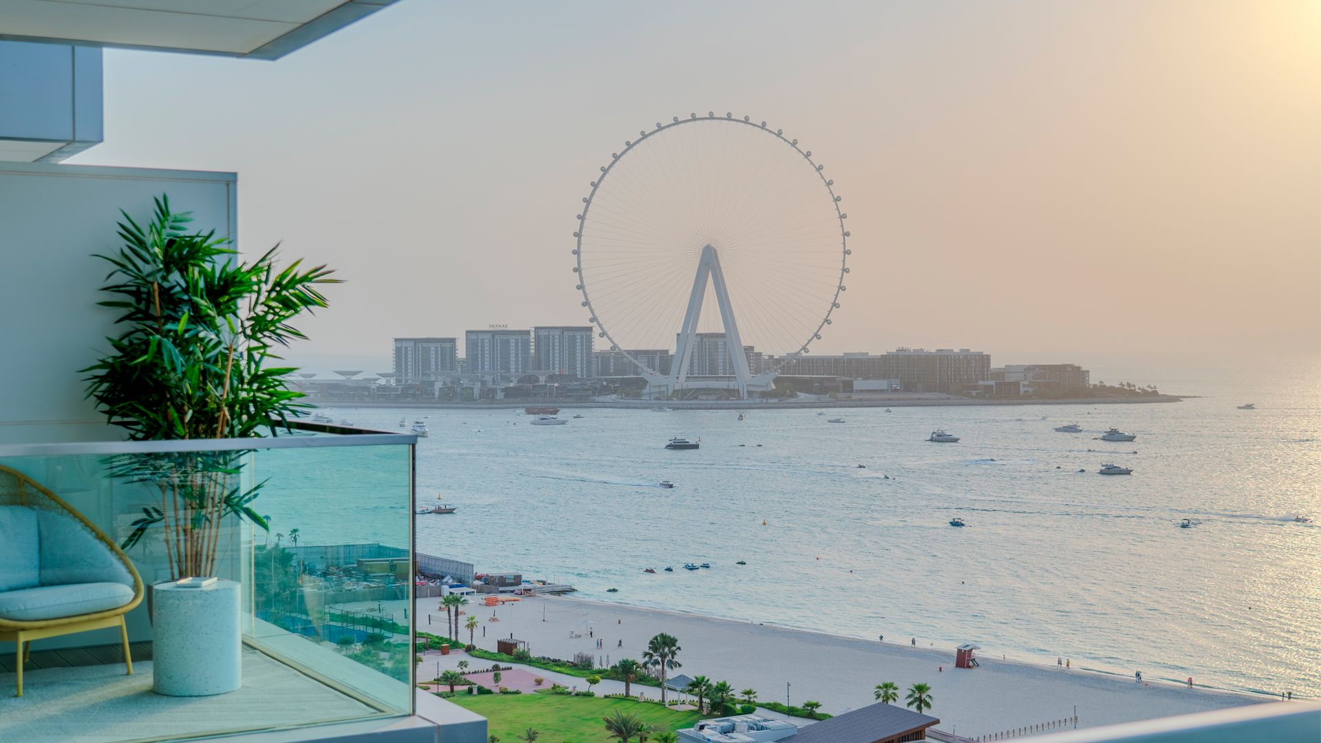 An apartment with 2 bedrooms in the complex One JBR. The apartment with an area of 1 920 ft² is located on the 10 of 47, finished. Windows: panoramic. View from the windows: sea view, palm jumeirah view, bluewaters view.
