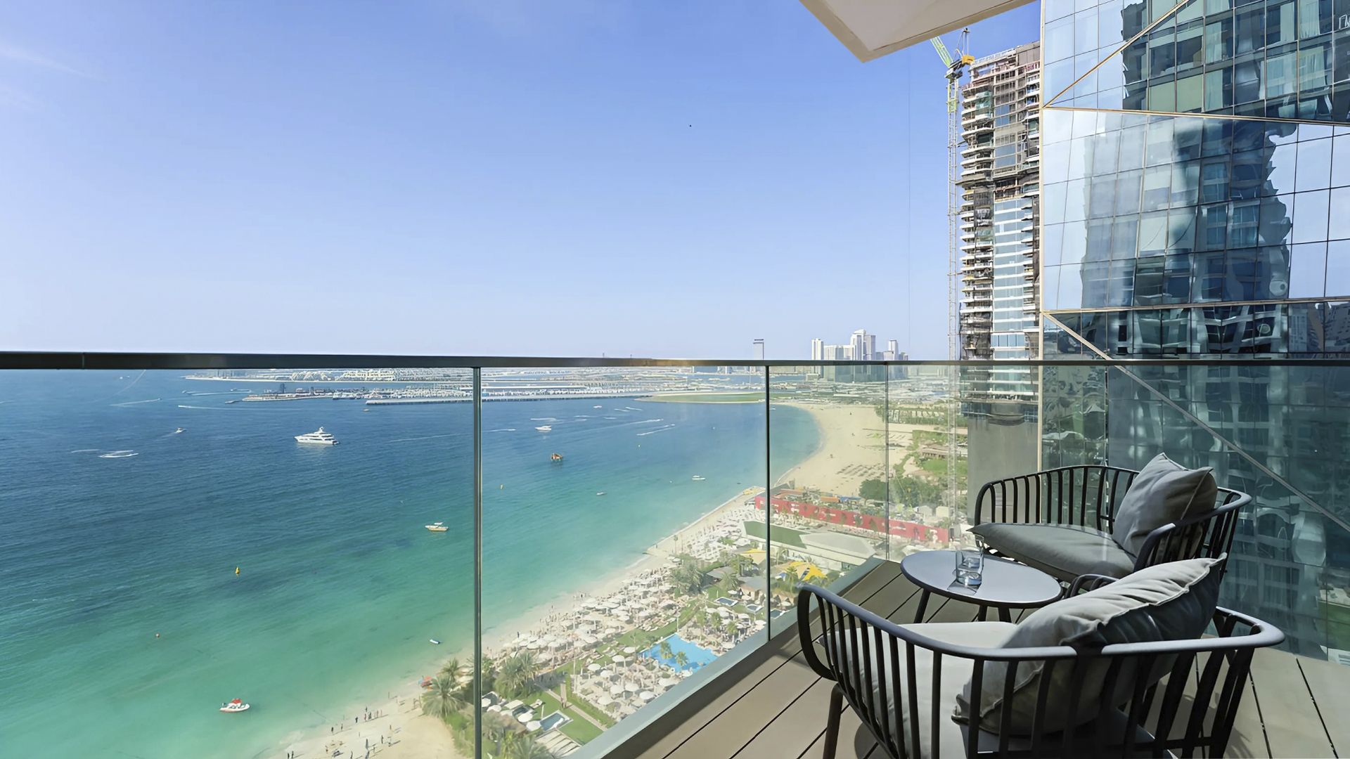 An apartment with 2 bedrooms in the complex La Vie. The apartment with an area of 1 410 ft² is located on the of 37, finished. Windows: panoramic. View from the windows: sea view. Delivery of the project is scheduled for the 3st st quarter of 2023.