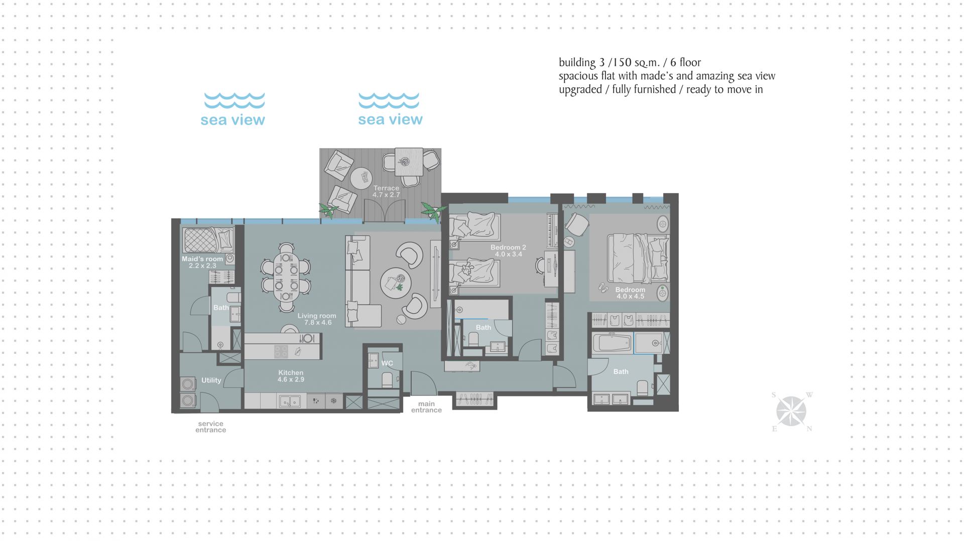 На острове Bluewaters расположены апартаменты с просторной планировкой и захватывающим видом на море. Свет наполняет интерьер с первых утренних лучей — панорамные окна открывают вид, где горизонт сливается с водой, а мягкий бриз наполняет террасу свежестью моря. Гостиная открытого типа становится центром дома — здесь можно встречать рассвет с чашкой кофе или проводить вечера в кругу семьи или друзей. Внутреннее пространство продумано до мелочей: 2 мастер-спальни, каждая с собственным санузлом, создают ощущение приватности и покоя.