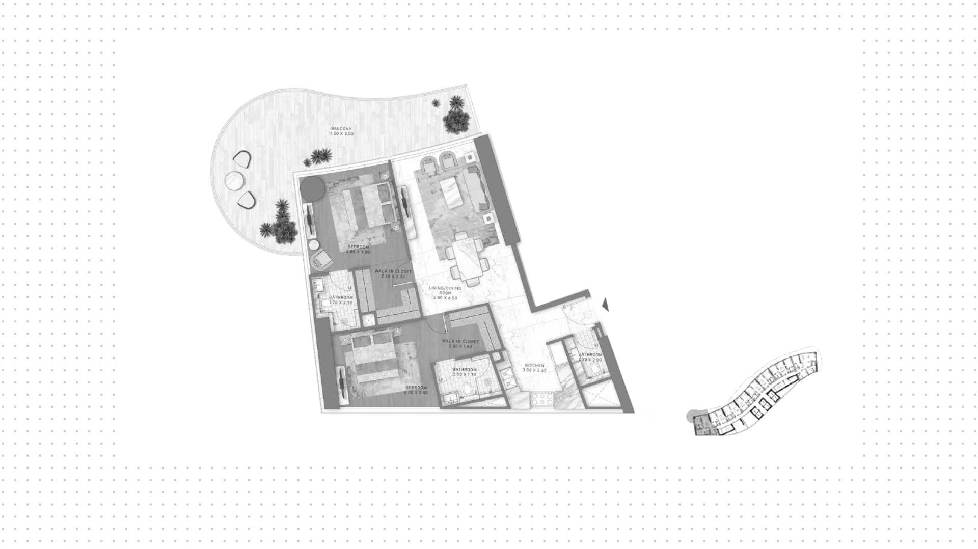 An apartment with 2 bedrooms in the complex DAMAC Bay by Cavalli. The apartment with an area of 1 536 ft² is located on the 24 of 42, finished. Windows: panoramic. Delivery of the project is scheduled for the 3st st quarter of 2027.