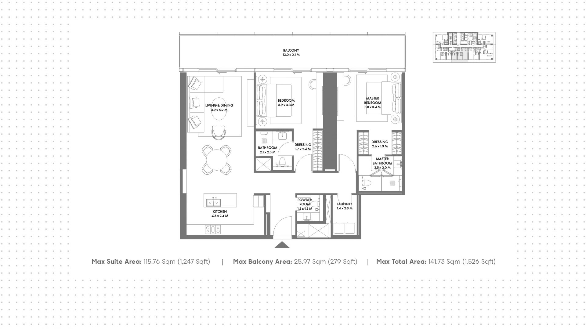 An apartment with 2 bedrooms in the complex W Residences at Dubai Harbour. The apartment with an area of 1 515 ft² is located on the 22. Finished. Windows: panoramic. View from the windows: sea view. Delivery of the project is scheduled for the 4st st quarter of 2027.
