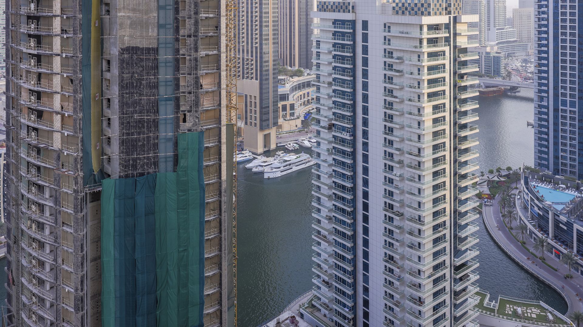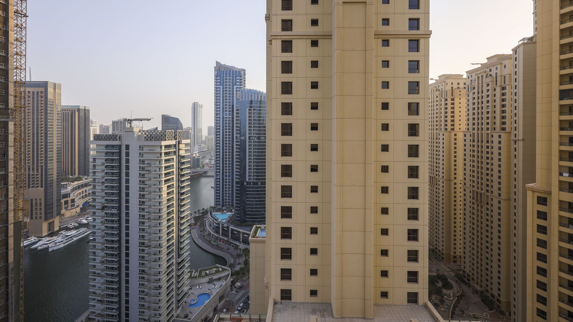 An apartment with 2 bedrooms in the complex Murjan. The apartment with an area of 1 317 ft² is located on the 30 of 46, finished. Windows: panoramic. View from the windows: sea and marina view.