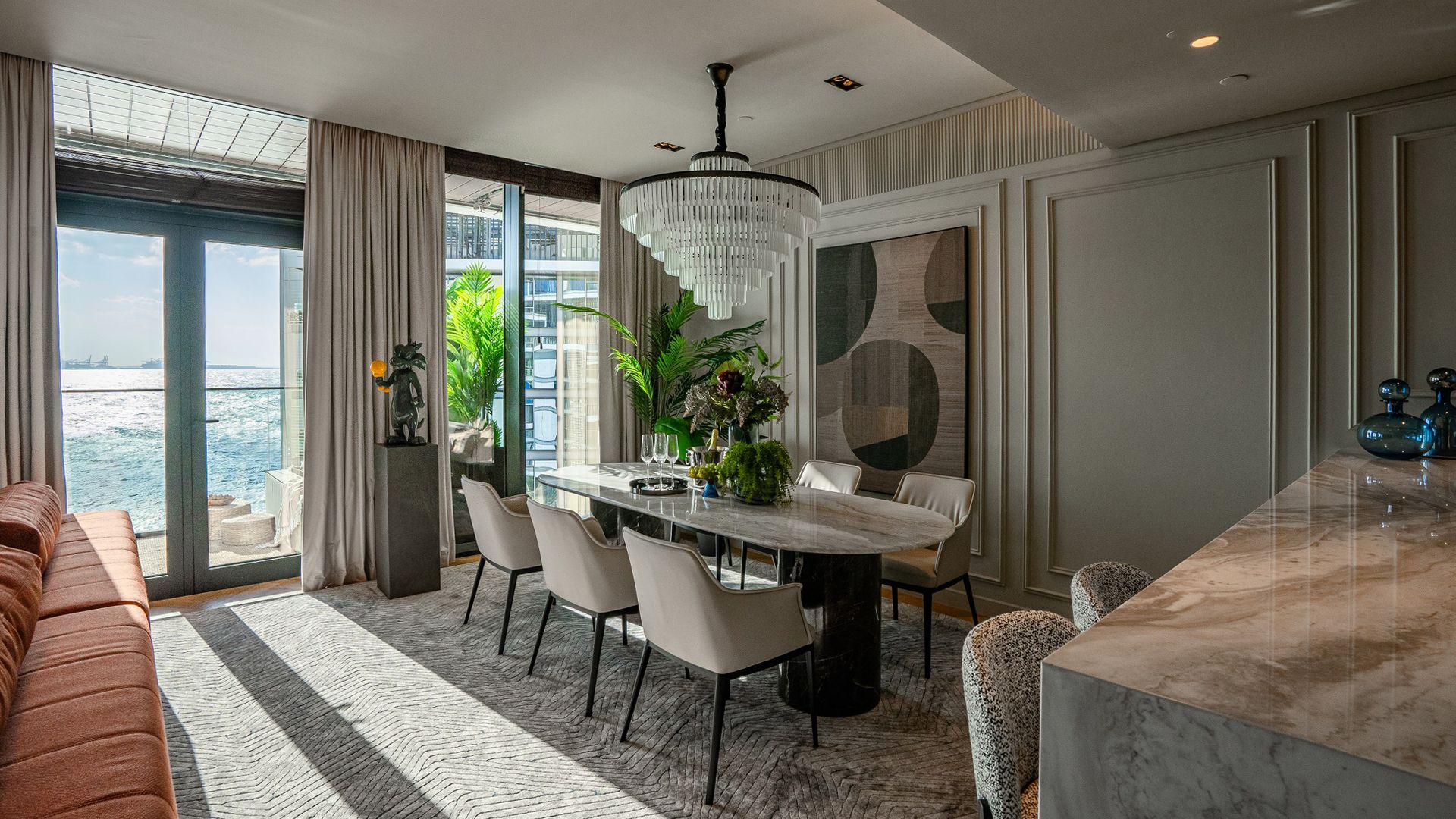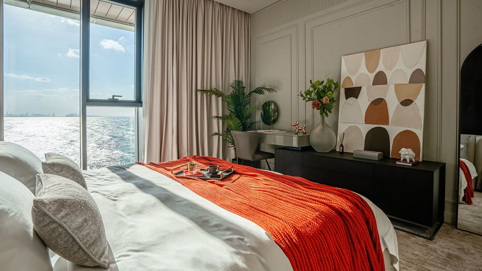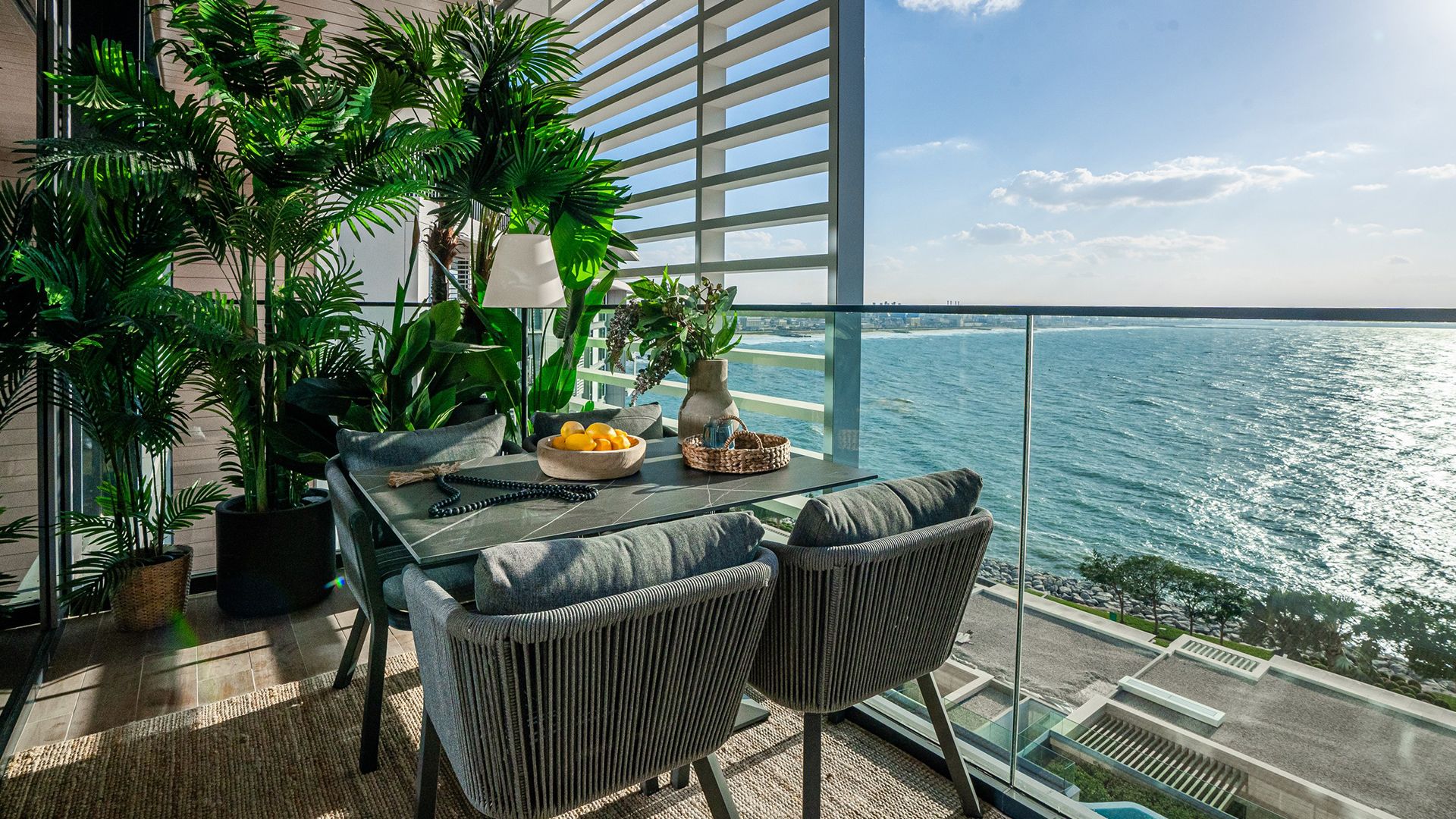 Enjoy uninterrupted sea views framed by floor-to-ceiling glazing that brings the marine panorama into the living space. Unwind on the terrace, seated comfortably among lush greenery in a calm, private setting. The layout includes 2 bedrooms, 3 bathrooms, and a spacious living and dining area. Fully furnished and finished with a contemporary designer fit-out, the residence is delivered ready for immediate, comfortable living.