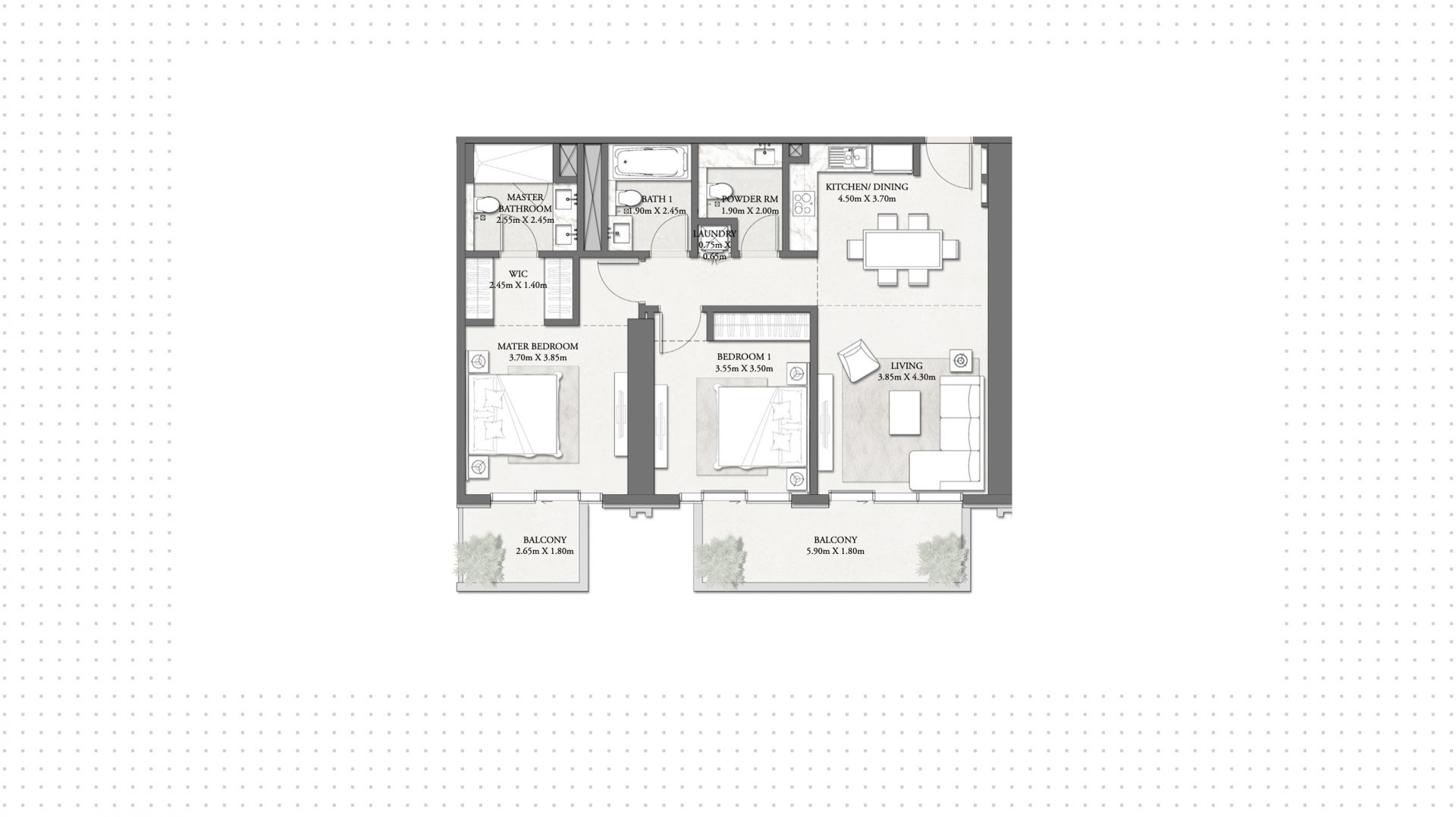 An apartment with 2 bedrooms in the complex Beach Mansion. The apartment with an area of 1 240 ft² is located on the 10 of 45, finished. Windows: panoramic. Delivery of the project is scheduled for the 4st st quarter of 2025.