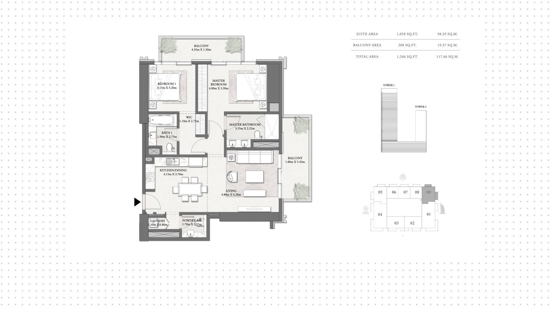 2-bedrooms apartment in Beach Mansion, 1 120 ft², №155557