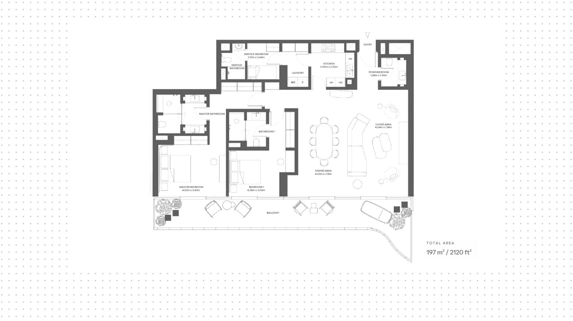 An apartment with 2 bedrooms in the complex Dubai Harbour Residences. The apartment with an area of 2 134 ft² is located on the 5. Finished. There is a terrace. Windows: panoramic. View from the windows: boulevard view. Delivery of the project is scheduled for the 4st st quarter of 2027.