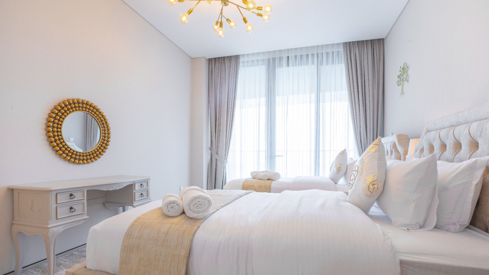An apartment with 2 bedrooms in the complex The Address Residences Jumeirah Resort. The apartment with an area of 1 900 ft² is located on the 1 of 77, finished. Windows: panoramic.