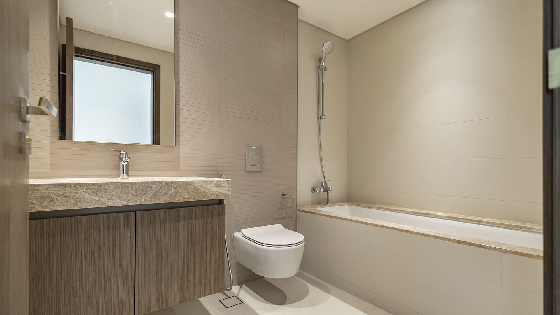 An apartment with 2 bedrooms in the complex Grand Bleu Tower. The apartment with an area of 1 254 ft² is located on the 7 of 53, finished. Windows: panoramic. View from the windows: partial palm view. Delivery of the project is scheduled for the 4st st quarter of 2024.