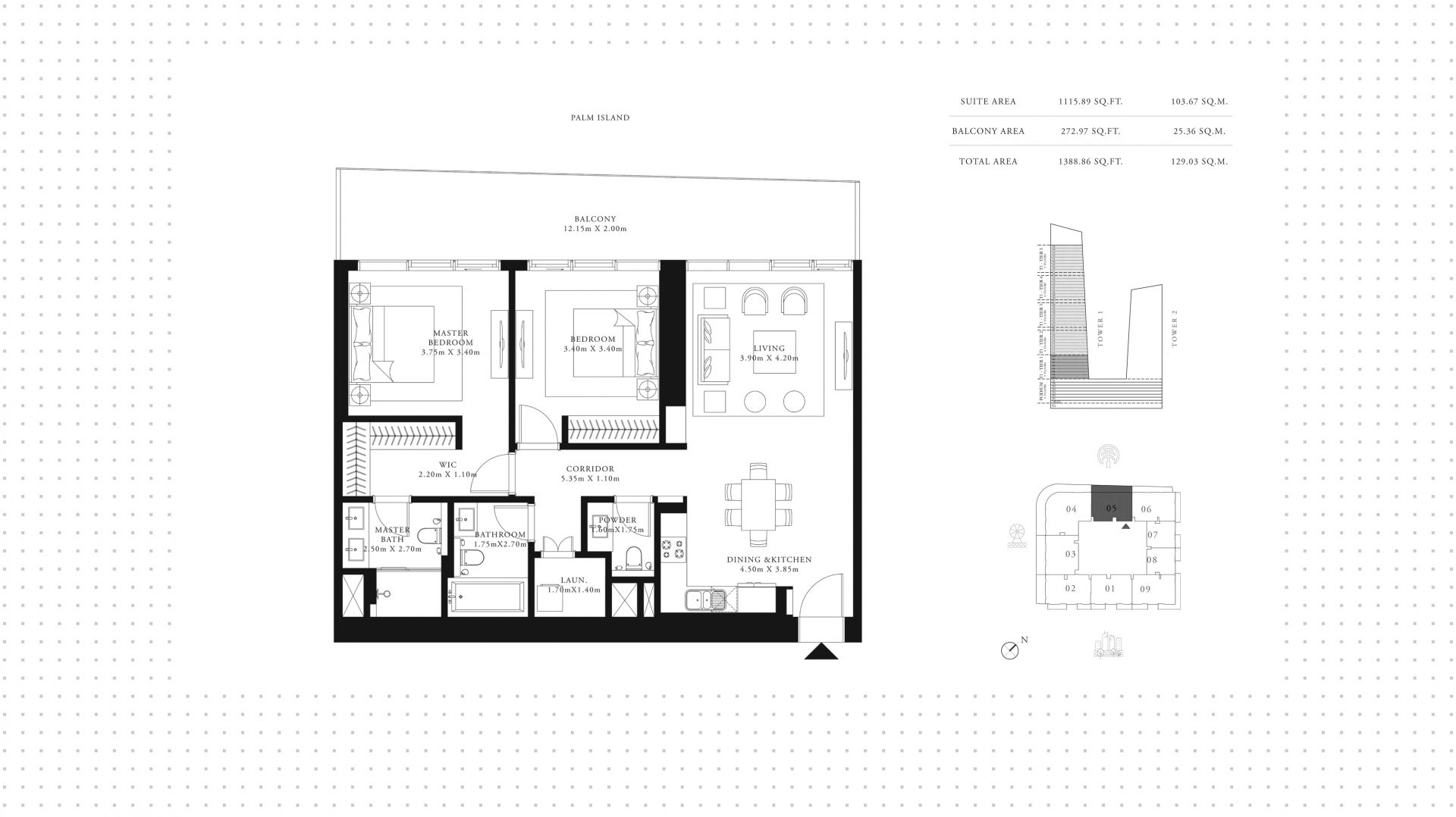 2-bedrooms apartment in Grand Bleu Tower, 1 390 ft², №91682