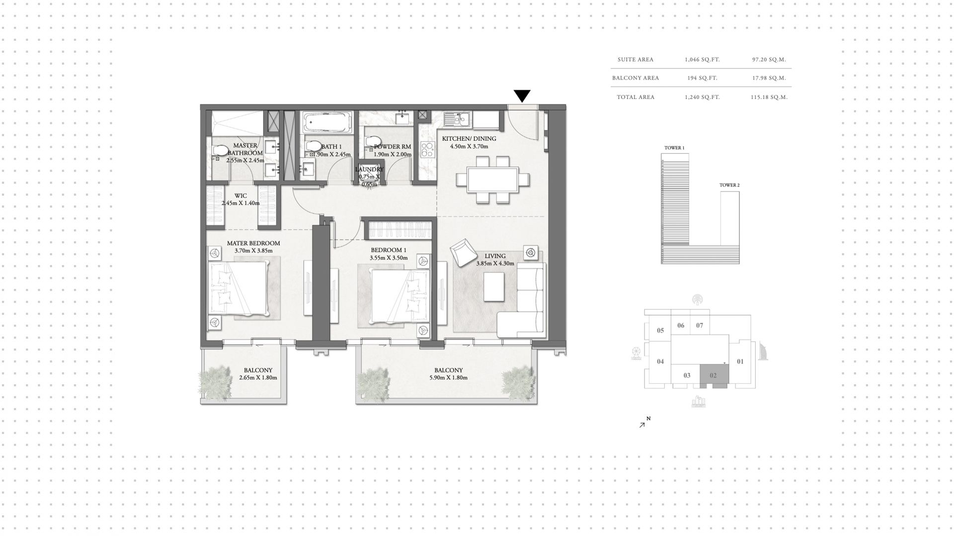 2-bedrooms apartment in Beach Mansion, 1 240 ft², №182418