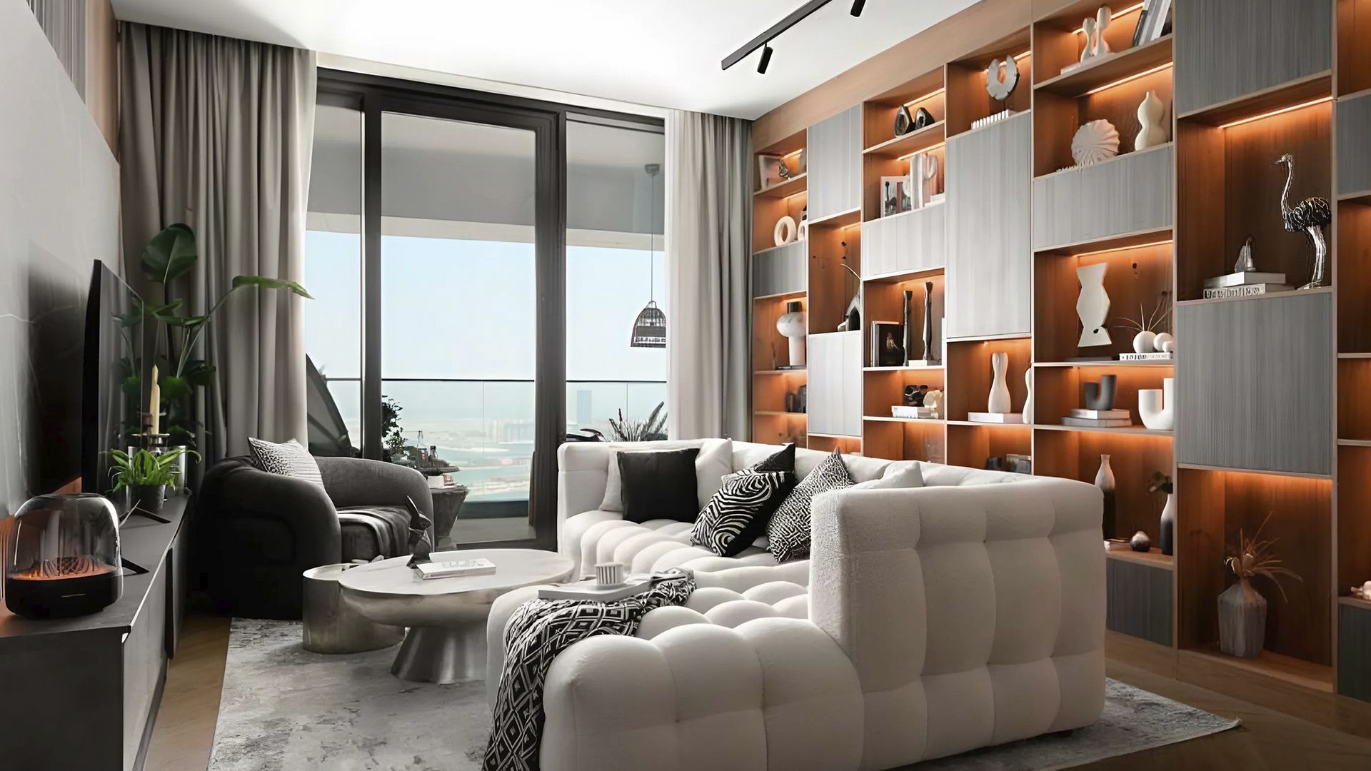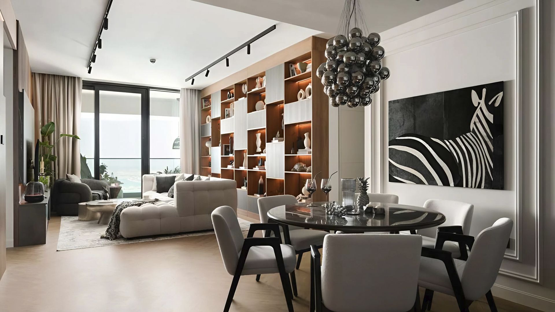 An apartment with 2 bedrooms in the complex The Address Residences Jumeirah Resort. The apartment with an area of 1 477 ft² is located on the 58 of 77, finished. Windows: panoramic. View from the windows: bluewaters view.
