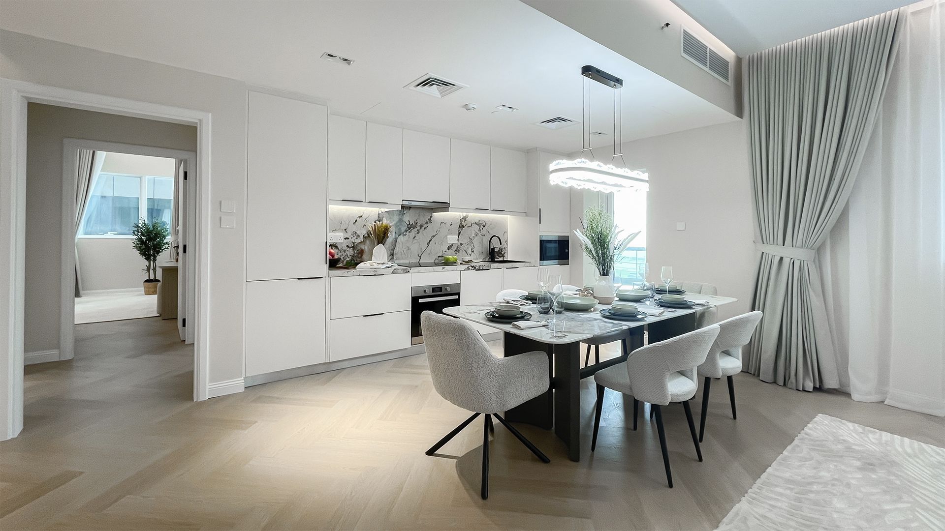 An apartment with 2 bedrooms in the complex Marina Pinnacle. The apartment with an area of 1 216 ft² is located on the 23 of 73, finished. Windows: panoramic. View from the windows: sea view.