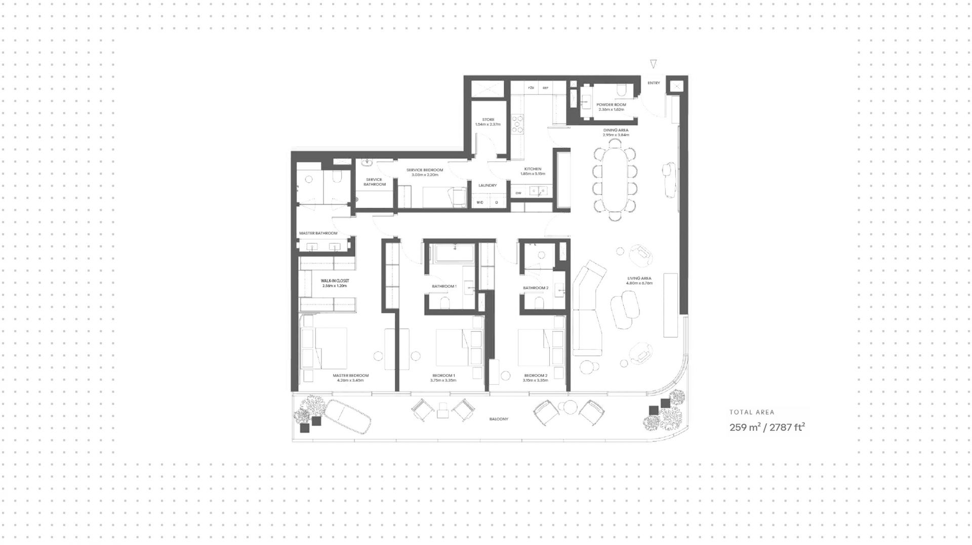 An apartment with 3 bedrooms in the complex Dubai Harbour Residences. The apartment with an area of 2 675 ft² is located on the 2. Finished. There is a terrace. Windows: panoramic. View from the windows: boulevard view. Delivery of the project is scheduled for the 4st st quarter of 2027.