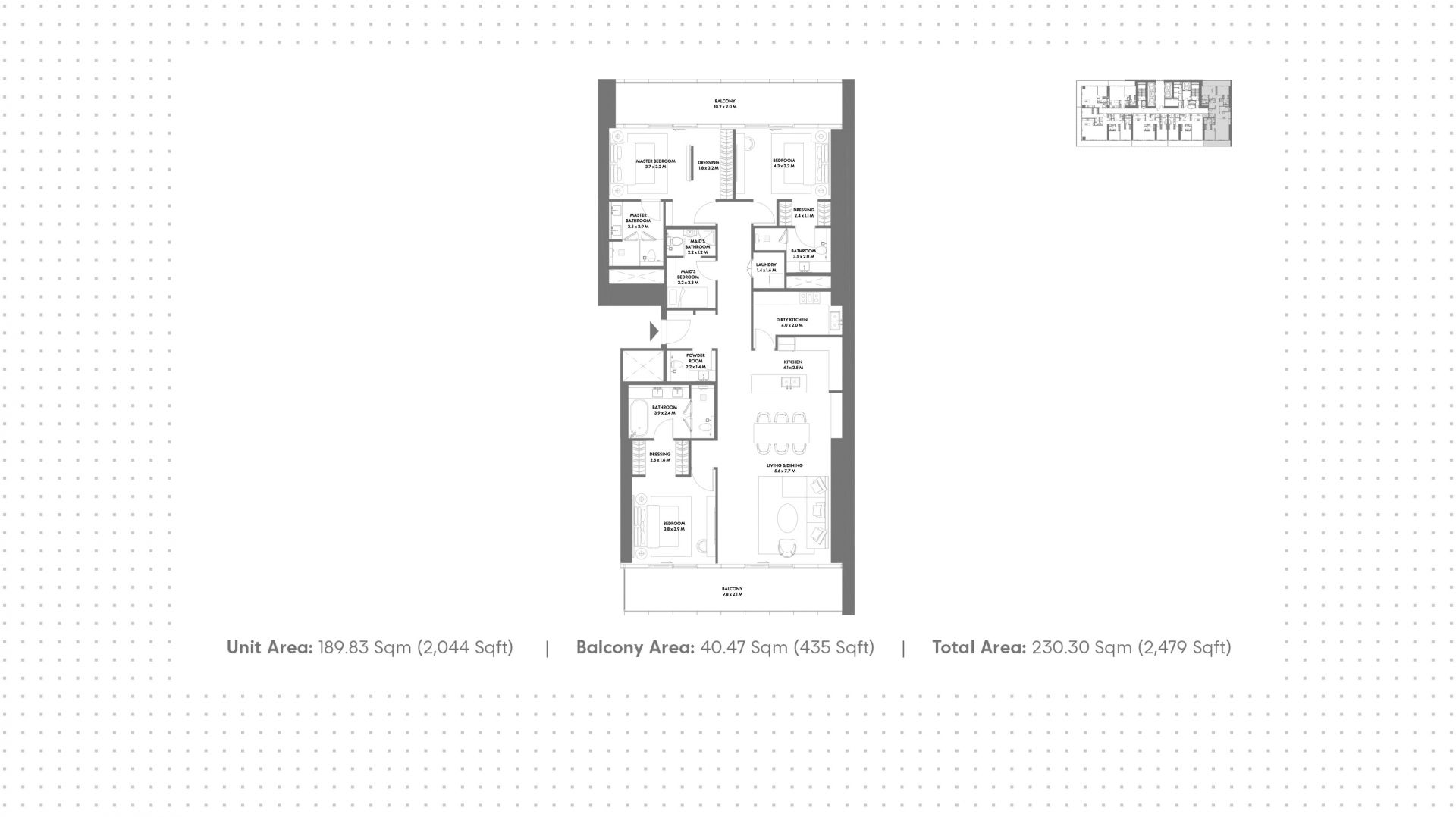 An apartment with 3 bedrooms in the complex W Residences at Dubai Harbour. The apartment with an area of 2 479 ft² is located on the 22. Finished. Windows: panoramic. View from the windows: sea view. Delivery of the project is scheduled for the 4st st quarter of 2027.