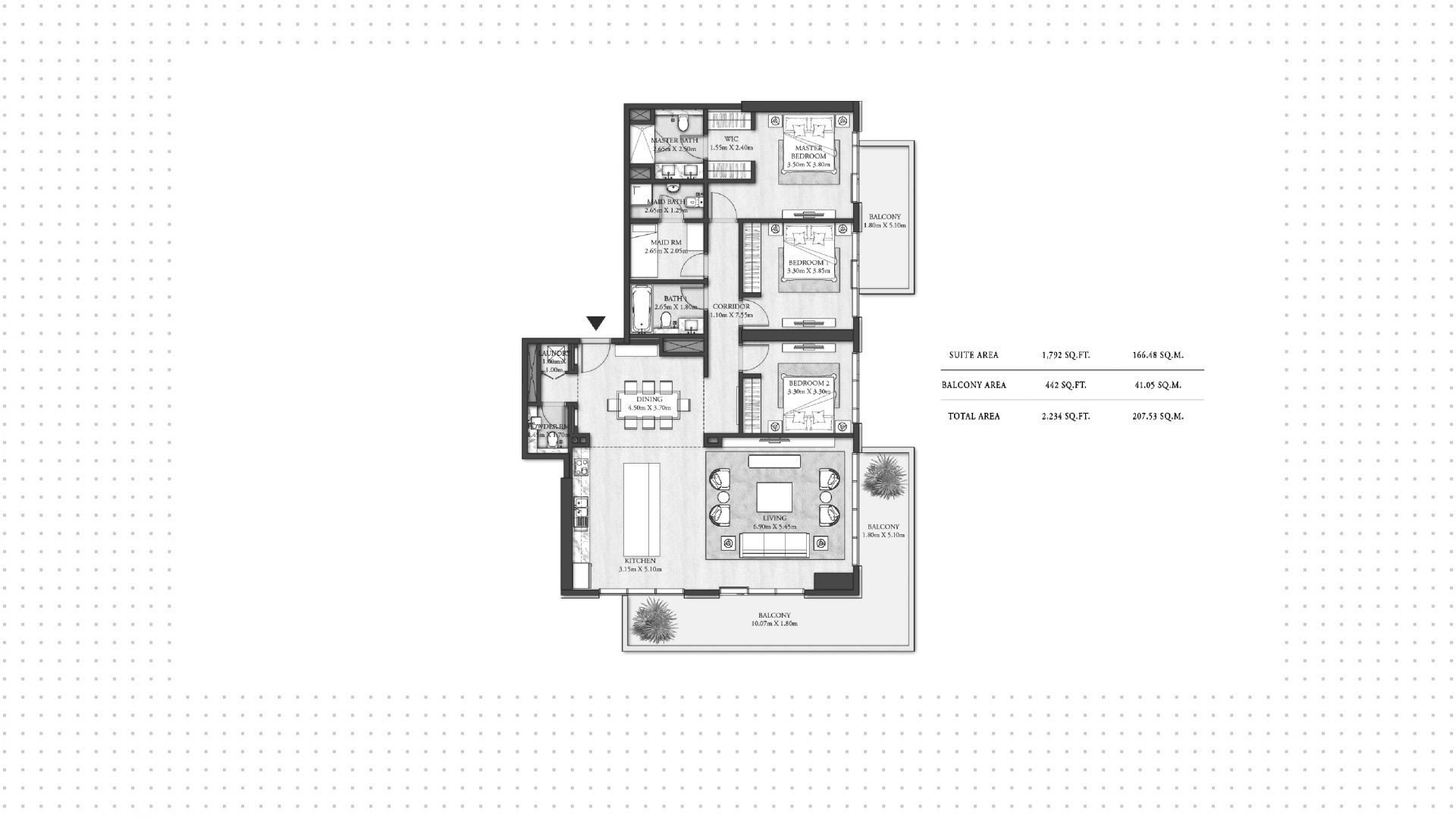 An apartment with 3 bedrooms in the complex Beach Mansion. The apartment with an area of 2 234 ft² is located on the 6 of 45, finished. Windows: panoramic. Delivery of the project is scheduled for the 4st st quarter of 2025.