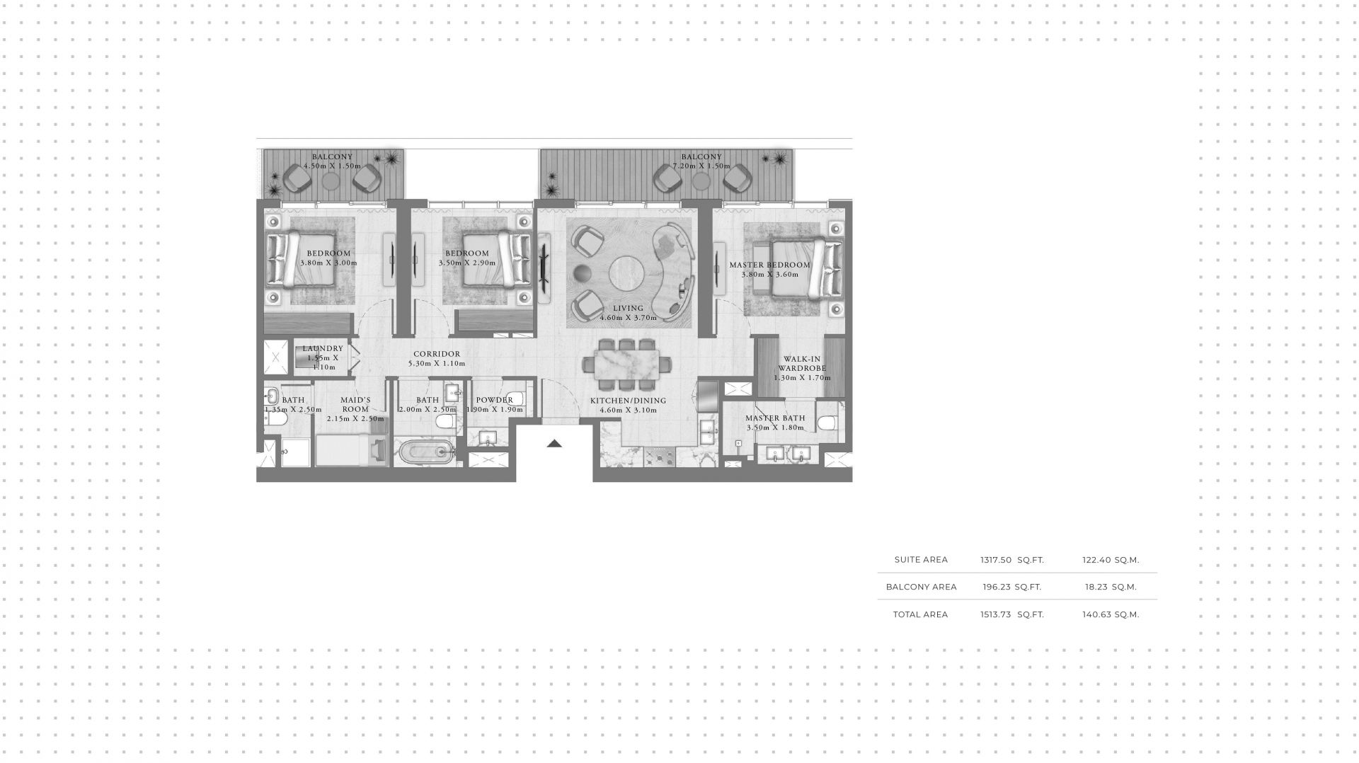 An apartment with 3 bedrooms in the complex Seapoint. The apartment with an area of 1 514 ft² is located on the 40 of 57, finished. Windows: panoramic. Delivery of the project is scheduled for the 2st st quarter of 2028.