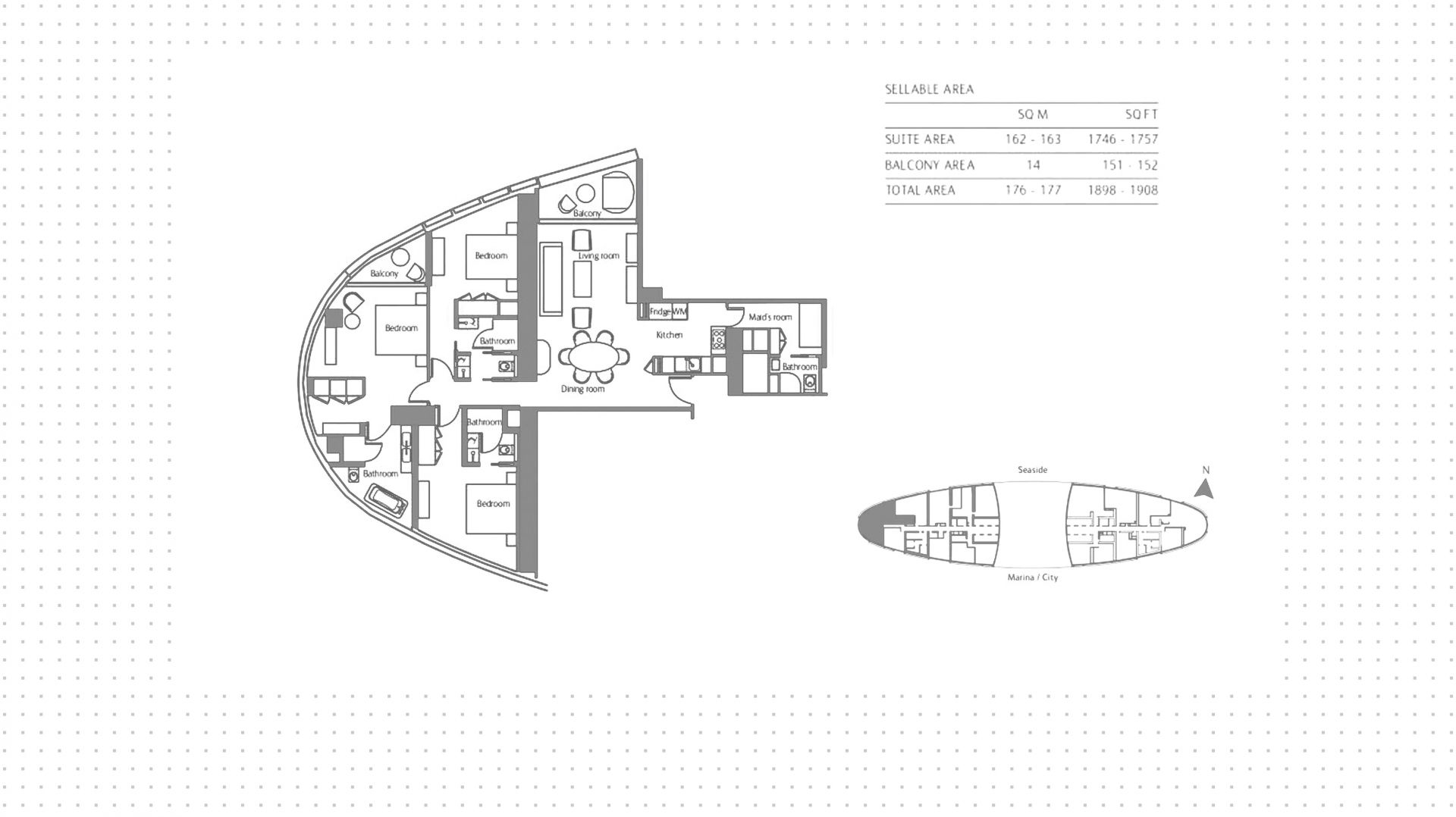 3-bedrooms apartment in The Address Residences Jumeirah Resort, 1 865 ft², №163896