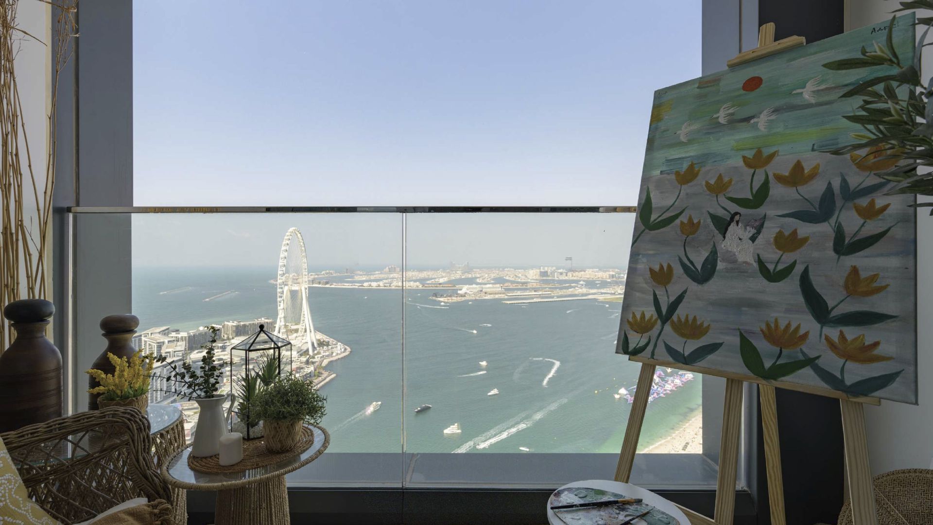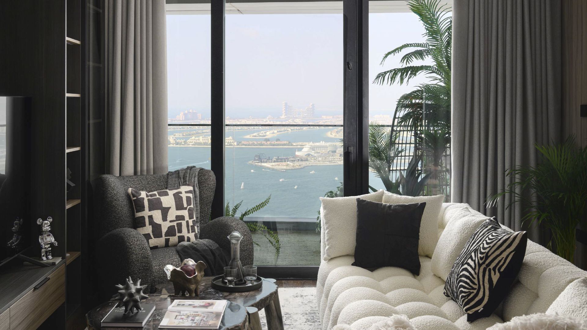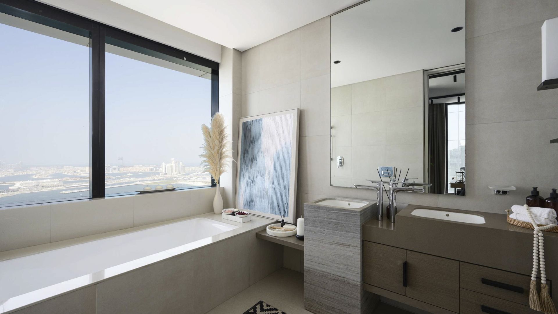 An apartment with 3 bedrooms in the complex The Address Residences Jumeirah Resort. The apartment with an area of 1 940 ft² is located on the 48 of 77, finished. Windows: panoramic. View from the windows: sea and palm view.