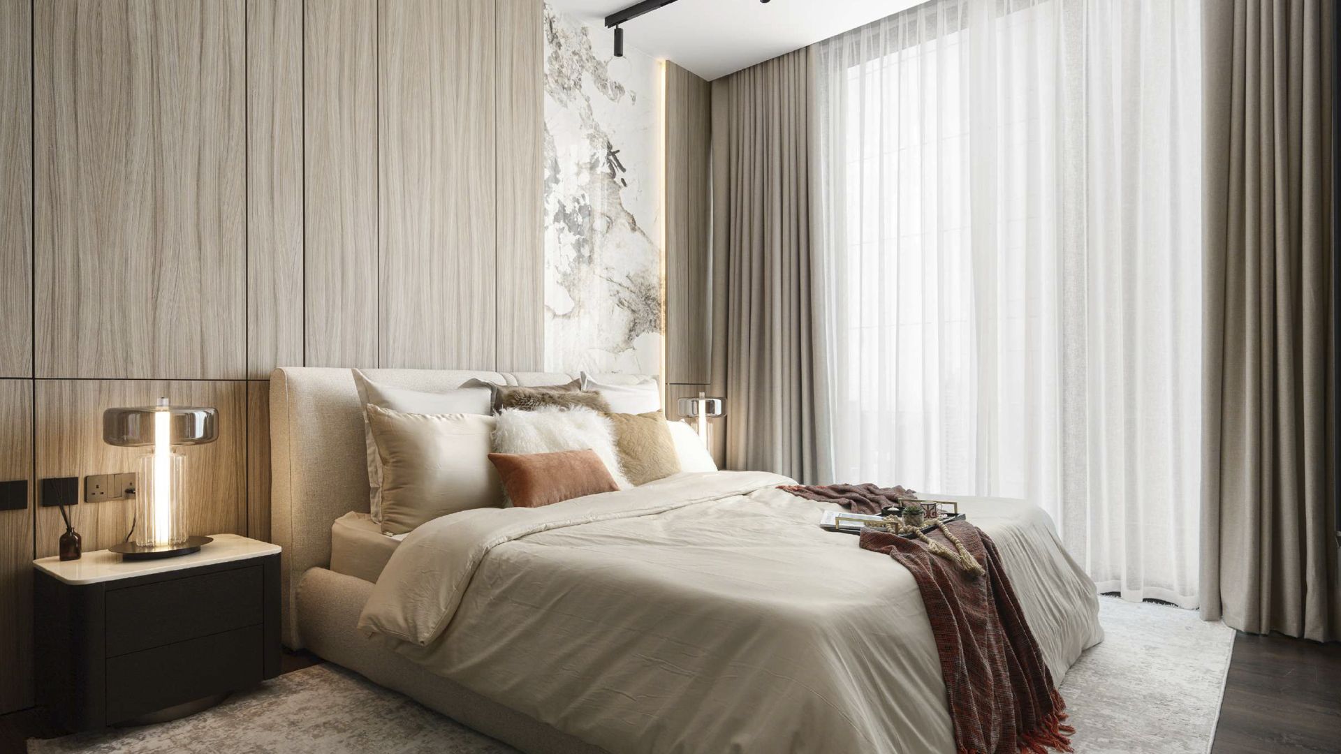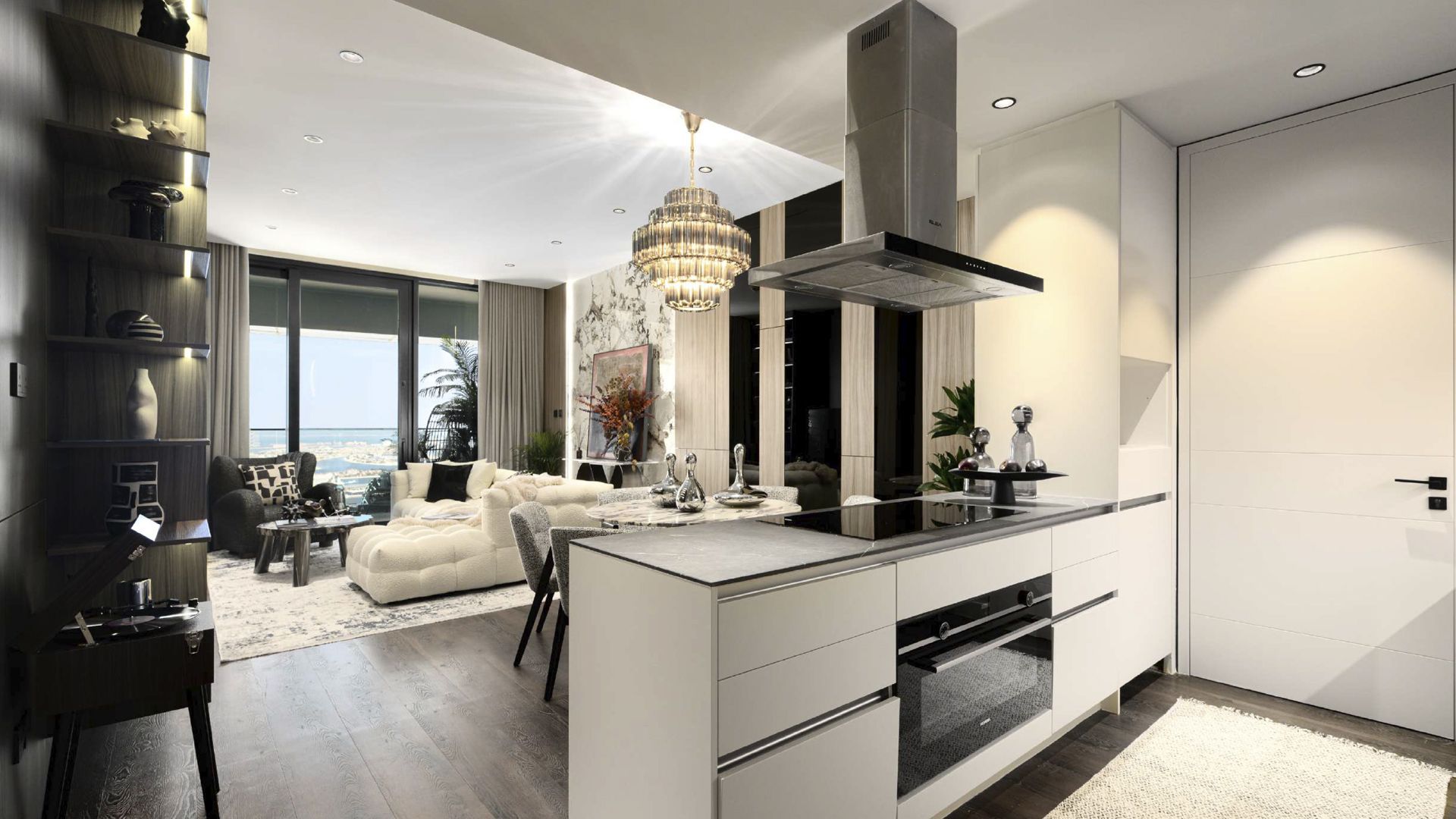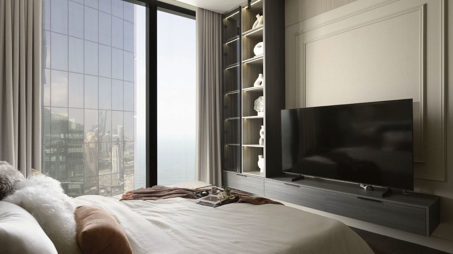 An apartment with 3 bedrooms in the complex The Address Residences Jumeirah Resort. The apartment with an area of 1 940 ft² is located on the 48 of 77, finished. Windows: panoramic. View from the windows: sea and palm view.