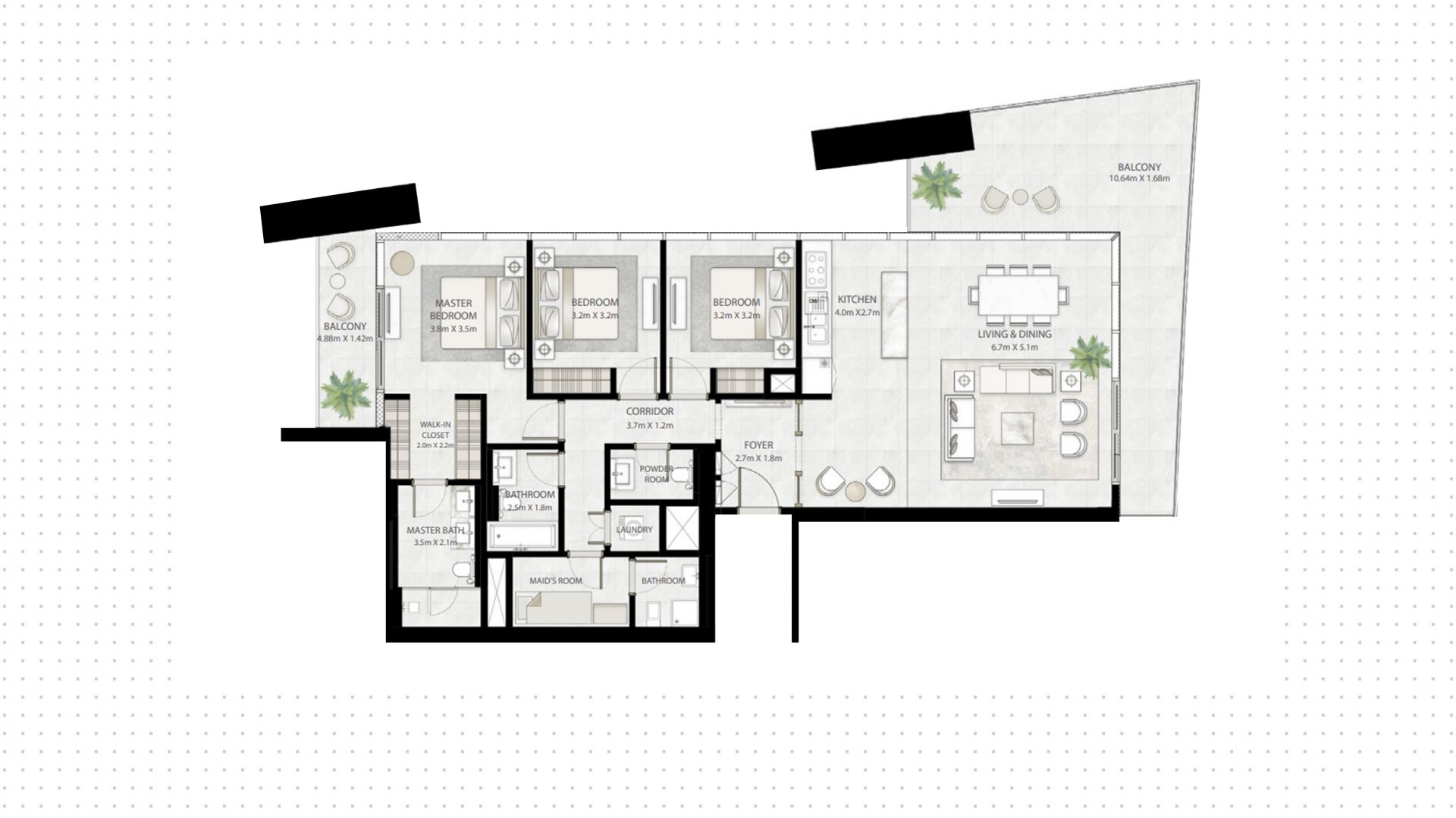 An apartment with 3 bedrooms in the complex Beach Vista. The apartment with an area of 2 131 ft² is located on the 3 of 33, finished. Windows: panoramic. View from the windows: palm and jbr view. Delivery of the project is scheduled for the 3st st quarter of 2022.