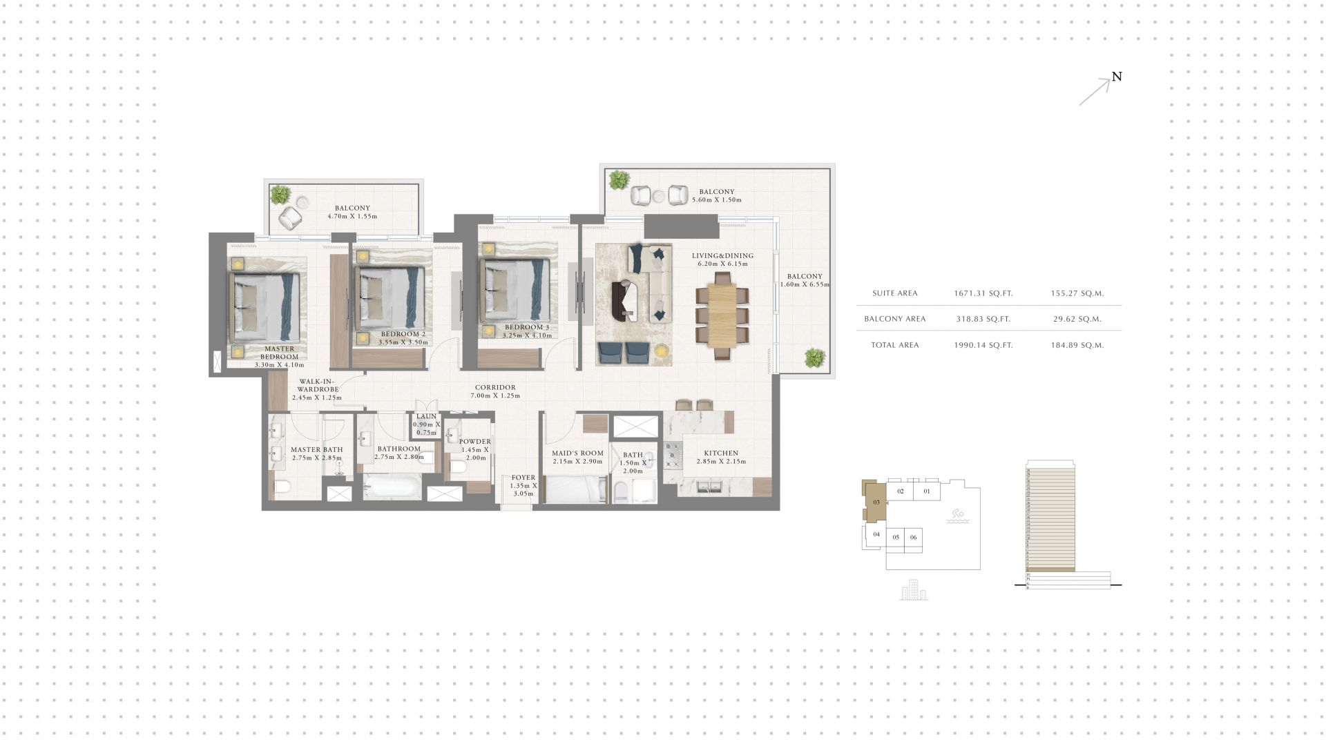 An apartment with 3 bedrooms in the complex Marina Cove. The apartment with an area of 1 990 ft² is located on the 1 of 29, finished. Windows: panoramic. Delivery of the project is scheduled for the 4st st quarter of 2029.