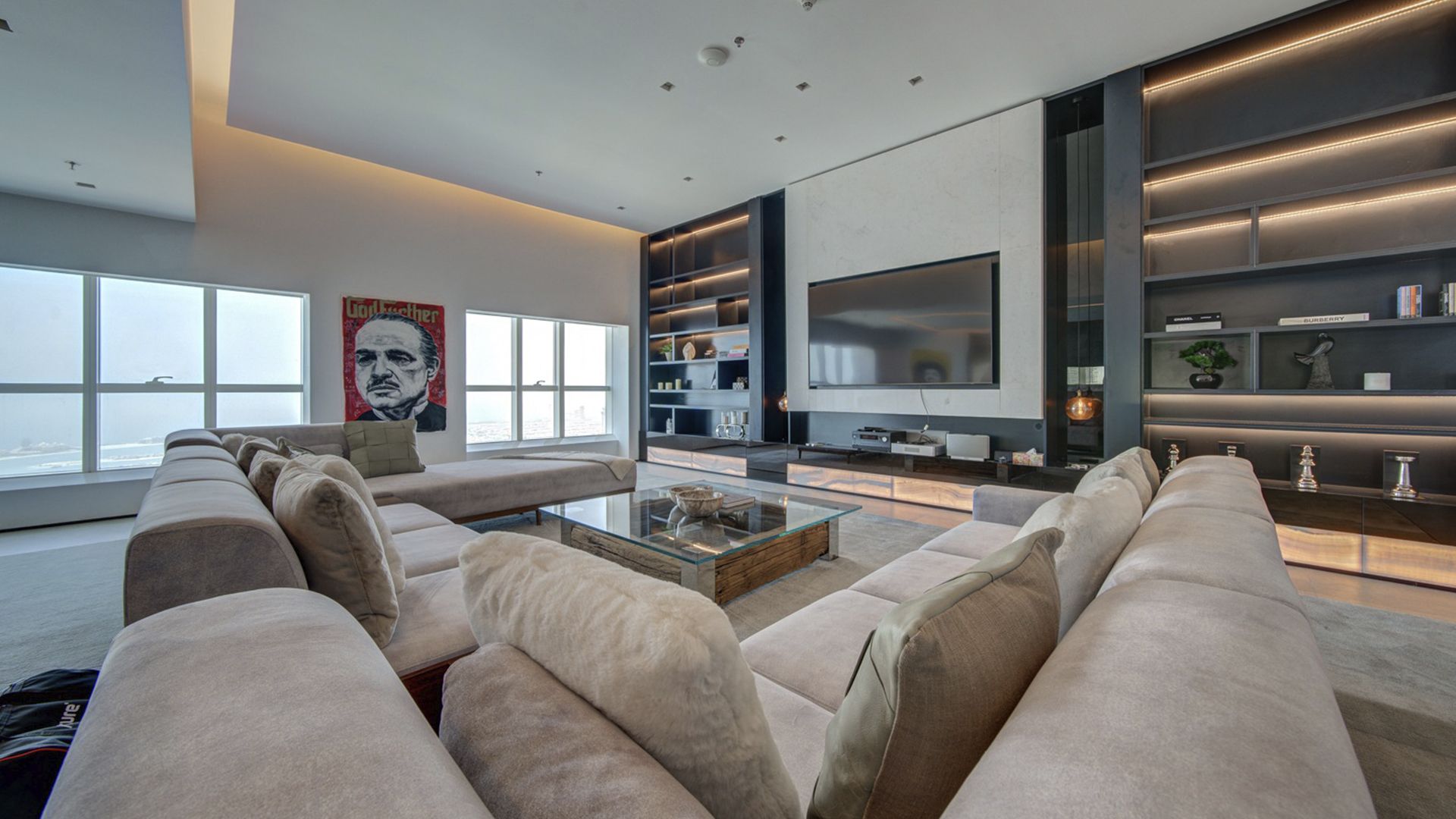 An apartment with 4 bedrooms in the complex Elite Residence. The apartment with an area of 6 200 ft² is located on the 82 of 91, finished. Windows: panoramic. View from the windows: palm jumeirah and marina.