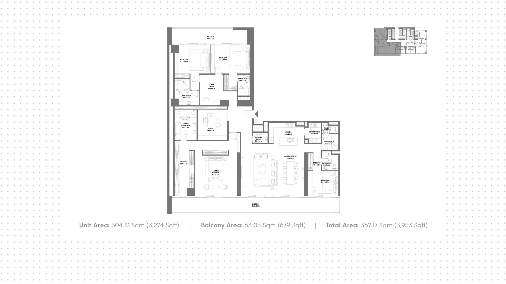 An apartment with 4 bedrooms in the complex W Residences at Dubai Harbour. The apartment with an area of 3 953 ft² is located on the 29. Finished. Windows: panoramic. View from the windows: sea view. Delivery of the project is scheduled for the 4st st quarter of 2027.