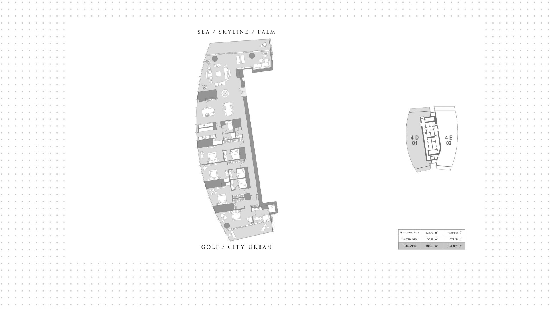 An apartment with 4 bedrooms in the complex Six Senses Residences. The apartment with an area of 5 209 ft² is located on the 69 of 122, finished. Windows: panoramic. View from the windows: south partial sea / city & golf view. Delivery of the project is scheduled for the 3st st quarter of 2028.