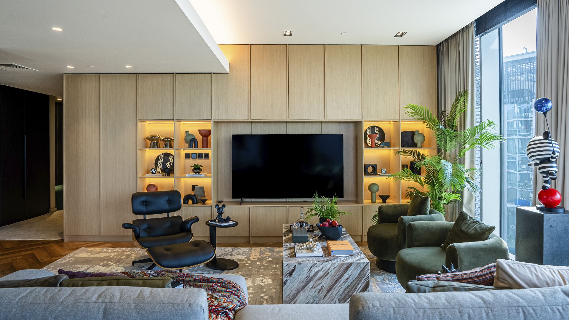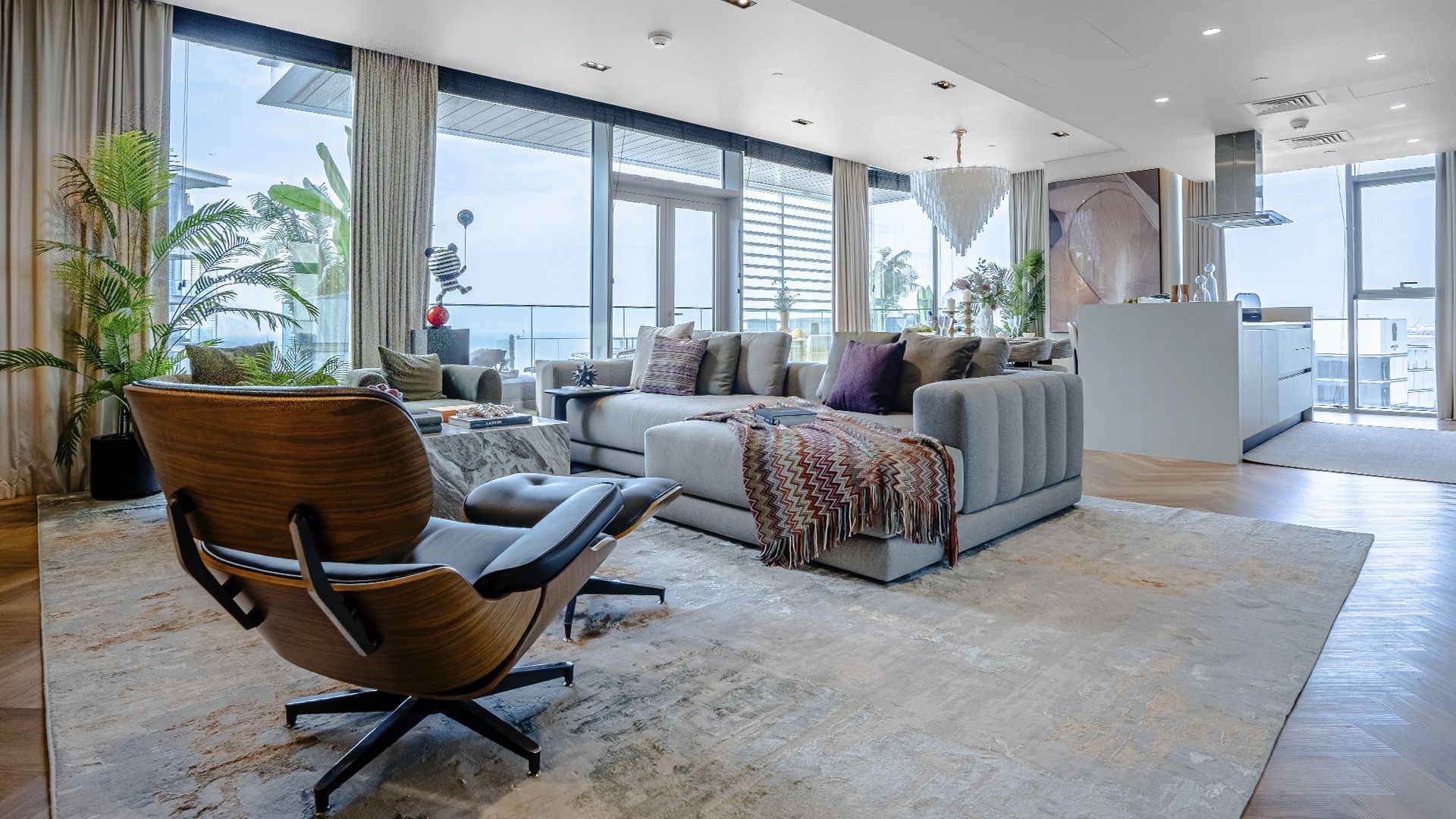 Угловые апартаменты с 4-мя спальнями в знаковой локации Bluewaters. Планировочное решение предусматривает просторную гостиную и обеденную зоны с выходом на террасу, комнату для персонала и хозяйственное помещение. Одну из комнат можно задействовать в качестве кабинета. Панорамные окна наполняют пространство светом и открывают живописные виды на водную гладь залива.