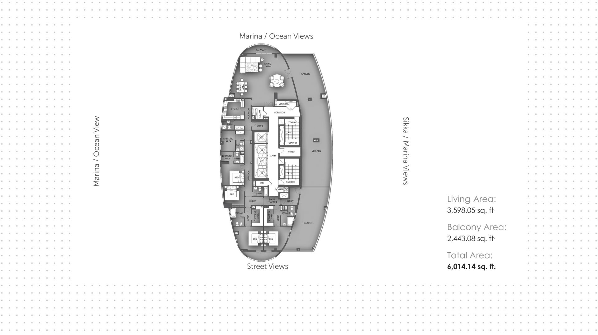 An app.kinds.penthouse with 4 bedrooms in the complex Marina Star. The app.kinds.penthouse with an area of 6 054 ft² is located on the 26 of 27, finished. Windows: panoramic. View from the windows: 360 view. Delivery of the project is scheduled for the 4st st quarter of 2023.
