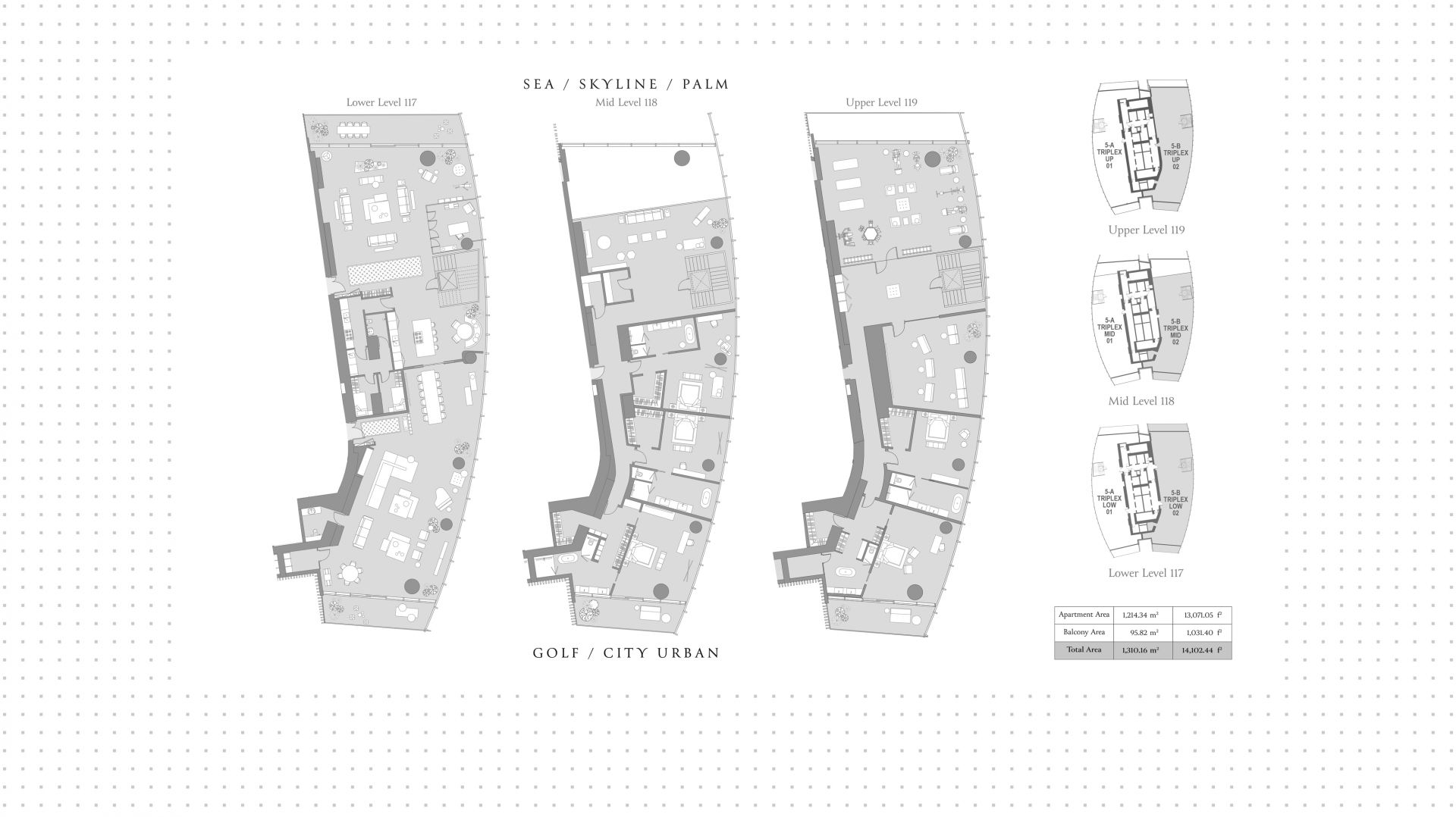 An apartment with 5 bedrooms in the complex Six Senses Residences. The apartment with an area of 14 102 ft² is located on the 117 of 122, finished. Windows: panoramic. View from the windows: north panoramic palm / dubai / sheikh zayed road / skyline view. Delivery of the project is scheduled for the 3st st quarter of 2028.