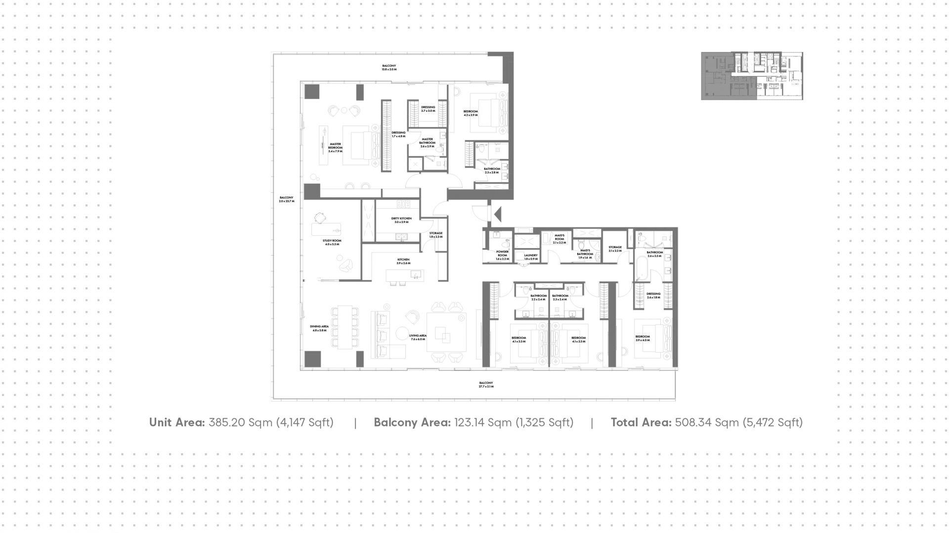 An apartment with 5 bedrooms in the complex W Residences at Dubai Harbour. The apartment with an area of 5 113 ft² is located on the 39. Finished. Windows: panoramic. View from the windows: sea view. Delivery of the project is scheduled for the 4st st quarter of 2027.