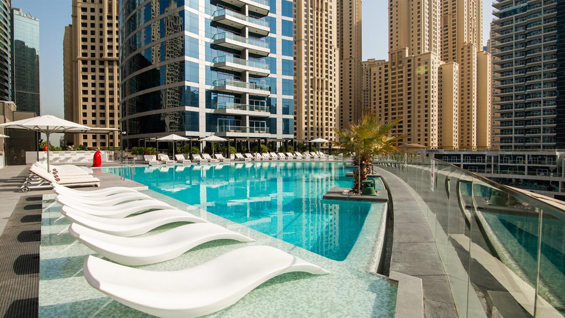 Dubai Marina is a residential neighborhood with skyscrapers and a gorgeous promenade lined with restaurants, cafes, shopping outlets, supermarkets, and entertainment options, including Dubai Marina Mall, a four-level shopping mall located near Bay Central. Enjoy convenient access to the Dubai Marina Yacht Club, JBR Walk, beach, Sky Dive Dubai, a vibrant nightlife, and the colorfully lighted Ain Dubai Ferris wheel in the background, all within walking distance. Families may identify nearby local and international schools, as well as convenient transportation options.